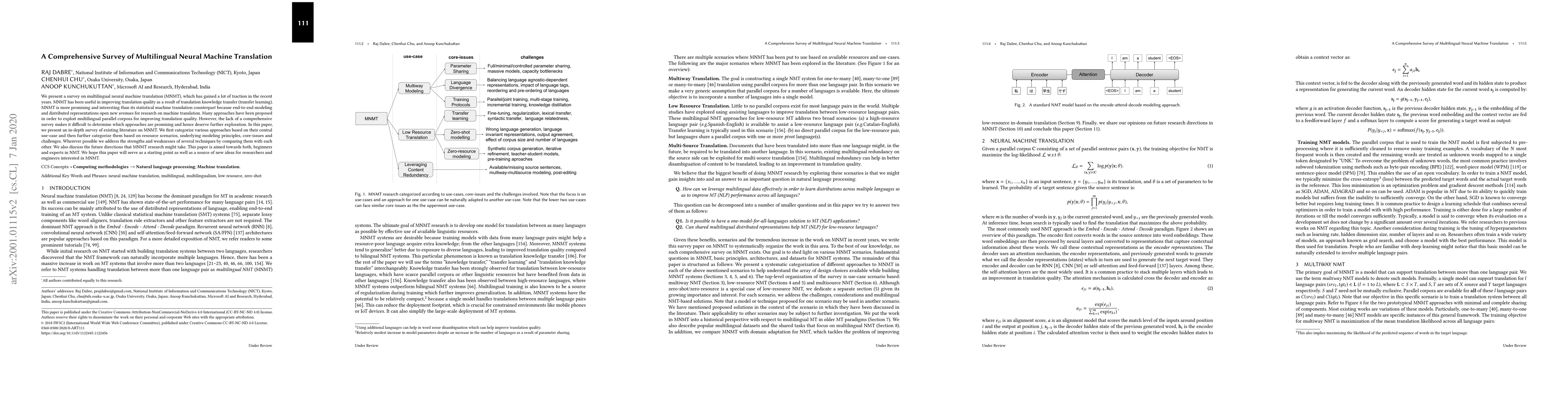 The paper categorizes and compares various MNMT approaches, providing an in-depth analysis of their strengths, weaknesses, and potential for further research.