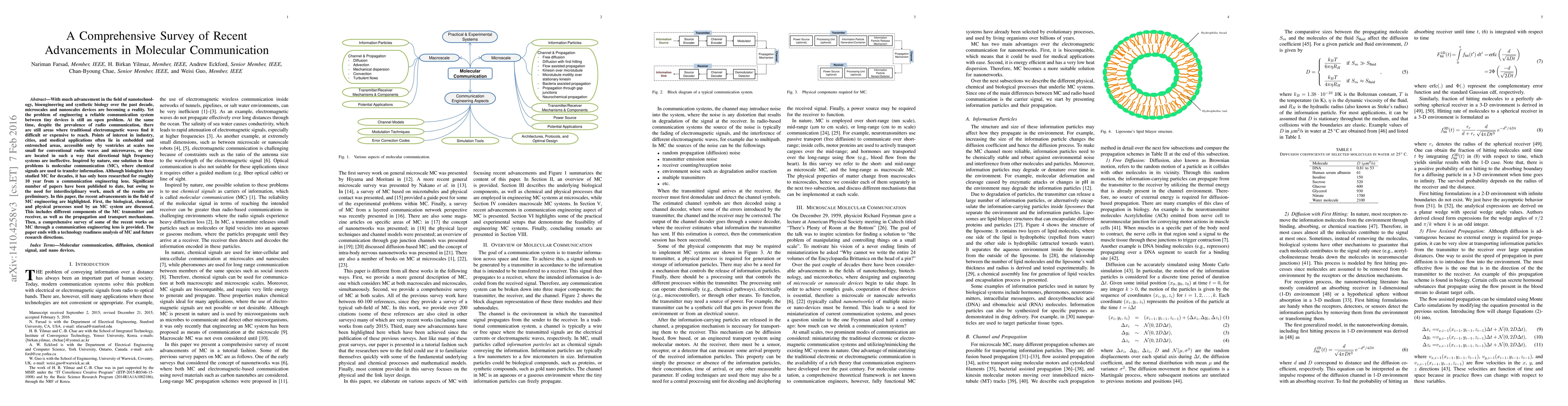 The paper provides a comprehensive survey of recent advancements in molecular communication (MC) from a communication engineering perspective, covering biological, chemical, and physical processes, components of transmitters and receivers, and propagation and transport mechanisms.