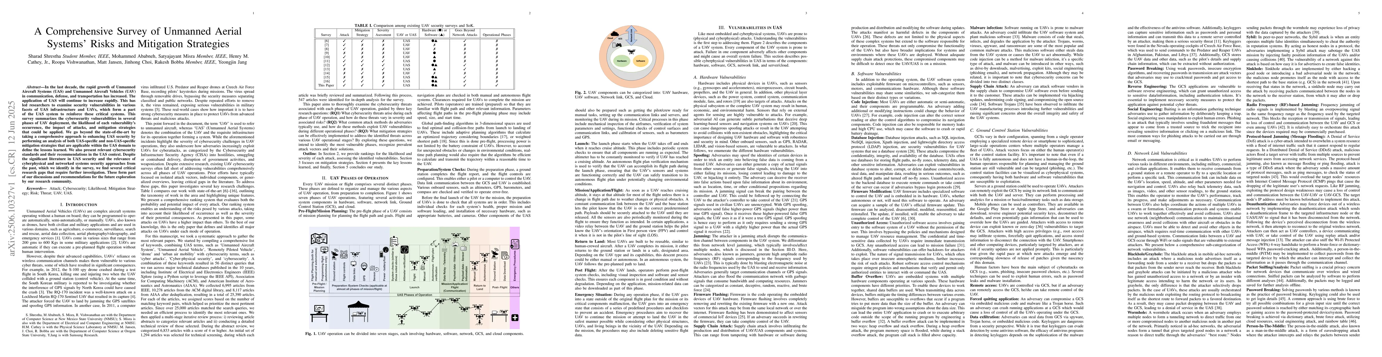 This research paper surveys cybersecurity risks in Unmanned Aircraft Systems (UAS), their likelihood of occurrence, impact, and mitigation strategies, highlighting critical gaps for future investigation.
