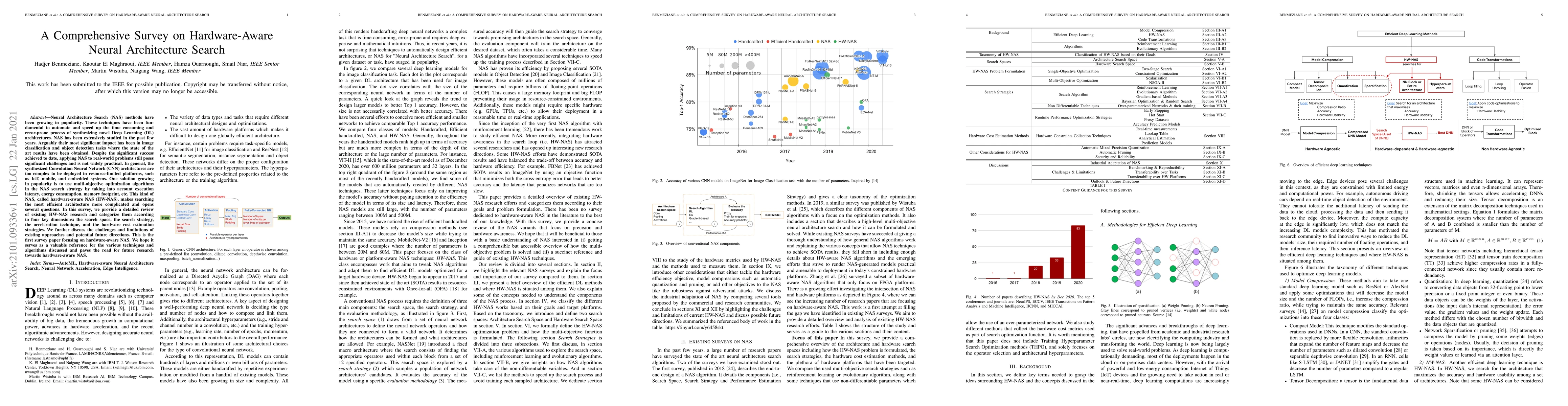 This survey provides a detailed review of hardware-aware Neural Architecture Search (NAS) methods, categorizing them based on search space, strategy, acceleration techniques, and cost estimation. It highlights challenges and limitations, aiming to guide future research in optimizing neural architectures for resource-constrained environments.