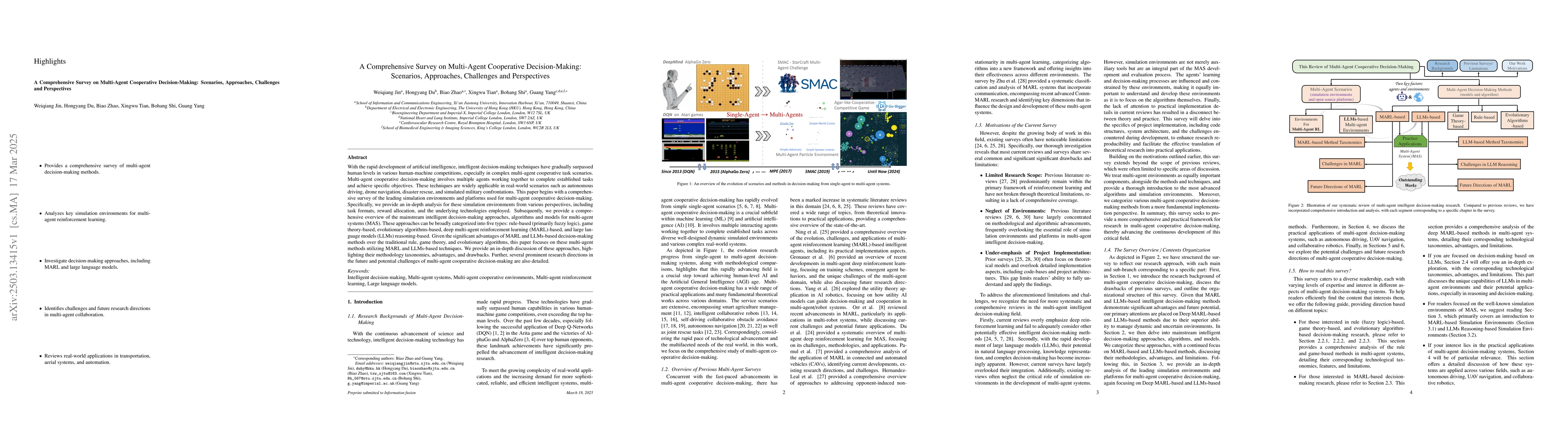 The paper provides a comprehensive survey of multi-agent cooperative decision-making, analyzing leading simulation environments and intelligent decision-making approaches.