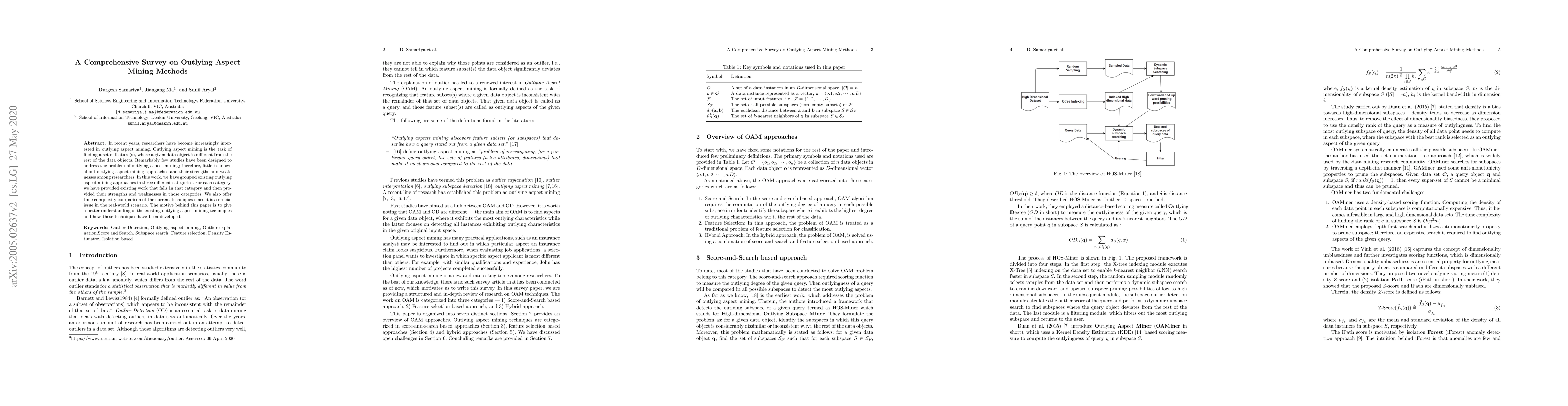This paper surveys the current methods for outlying aspect mining, categorizing existing approaches and analyzing their strengths, weaknesses, and time complexities to provide researchers with a comprehensive understanding of the field. It aims to highlight the development and comparative effectiveness of these techniques.