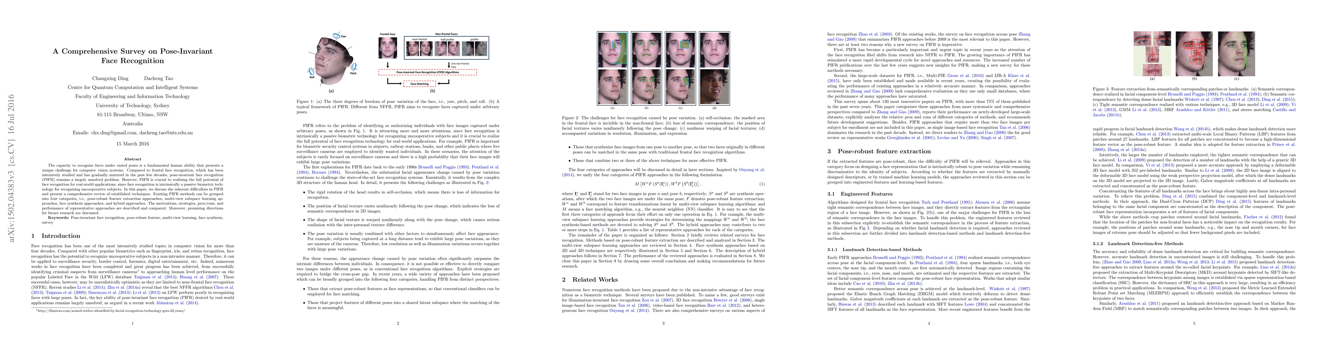 This paper reviews pose-invariant face recognition (PIFR) techniques, addressing the challenges of recognizing faces under varied poses. It categorizes existing methods into feature extraction, subspace learning, synthesis, and hybrid approaches, comparing their strategies, advantages, and limitations to identify future research directions.