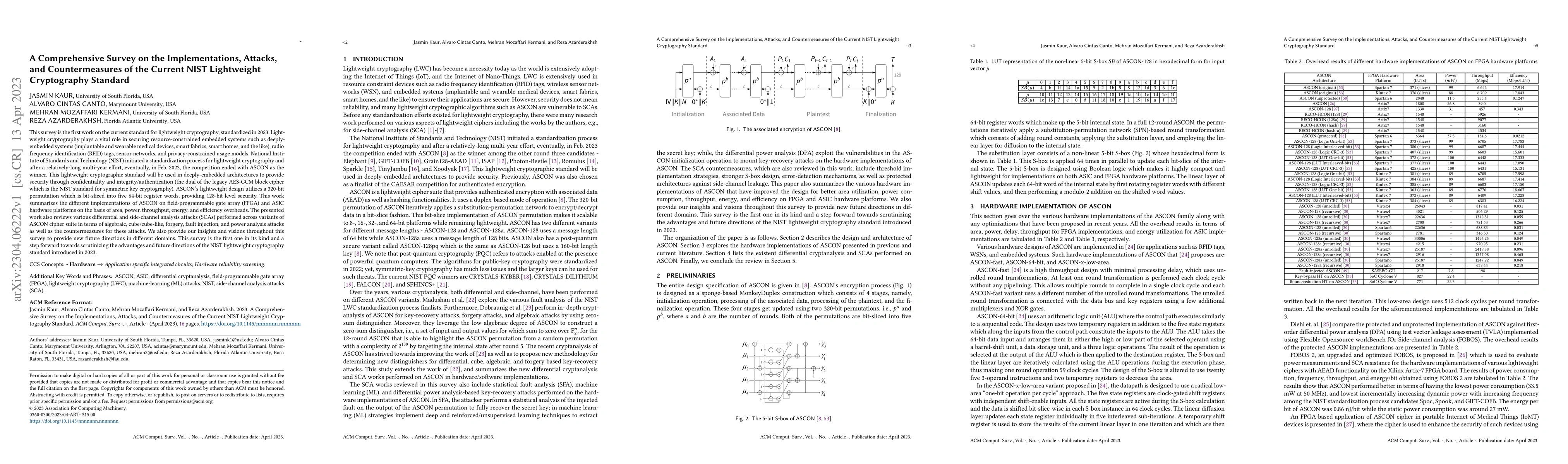 This survey is the first work on the current standard for lightweight cryptography, standardized in 2023. Lightweight cryptography plays a vital role in securing resource-constrained embedded systems such as deeply-embedded systems (implantable and wearable medical devices, smart fabrics, smart homes, and the like), radio frequency identification (RFID) tags, sensor networks, and privacy-constrained usage models. National Institute of Standards and Technology (NIST) initiated a standardization process for lightweight cryptography and after a relatively-long multi-year effort, eventually, in Feb. 2023, the competition ended with ASCON as the winner. This lightweight cryptographic standard will be used in deeply-embedded architectures to provide security through confidentiality and integrity/authentication (the dual of the legacy AES-GCM block cipher which is the NIST standard for symmetric key cryptography). ASCON's lightweight design utilizes a 320-bit permutation which is bit-sliced into five 64-bit register words, providing 128-bit level security. This work summarizes the different implementations of ASCON on field-programmable gate array (FPGA) and ASIC hardware platforms on the basis of area, power, throughput, energy, and efficiency overheads. The presented work also reviews various differential and side-channel analysis attacks (SCAs) performed across variants of ASCON cipher suite in terms of algebraic, cube/cube-like, forgery, fault injection, and power analysis attacks as well as the countermeasures for these attacks. We also provide our insights and visions throughout this survey to provide new future directions in different domains. This survey is the first one in its kind and a step forward towards scrutinizing the advantages and future directions of the NIST lightweight cryptography standard introduced in 2023.