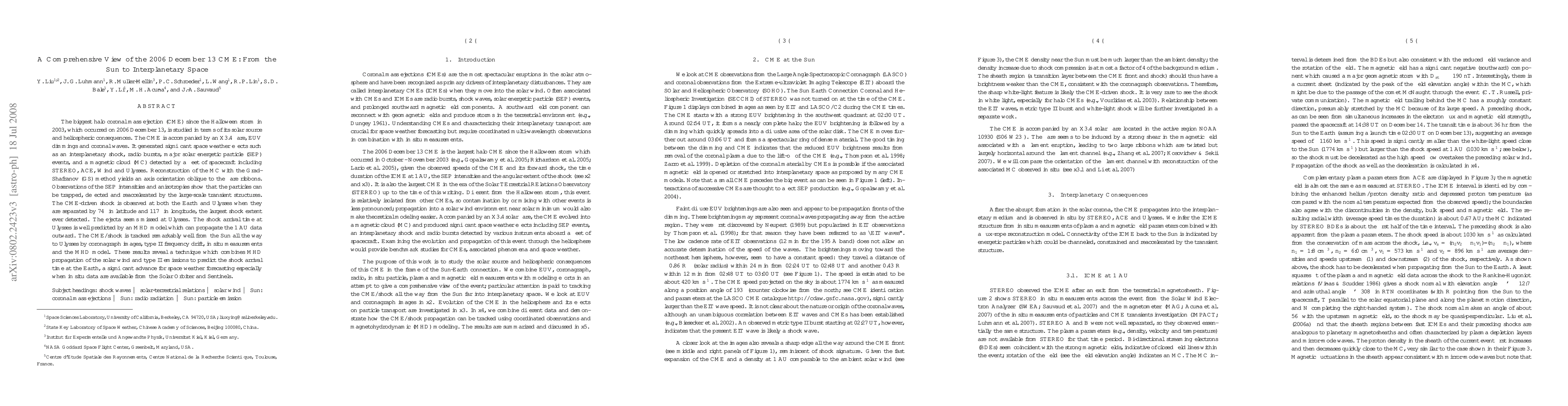This paper studies the 2006 December 13 coronal mass ejection (CME), the largest since the 2003 Halloween storm, detailing its solar origin and interplanetary effects. The CME, accompanied by an X3.4 flare, generated significant space weather impacts and was tracked from the Sun to Ulysses, demonstrating advanced techniques for predicting shock arrival times for improved space weather forecasting.