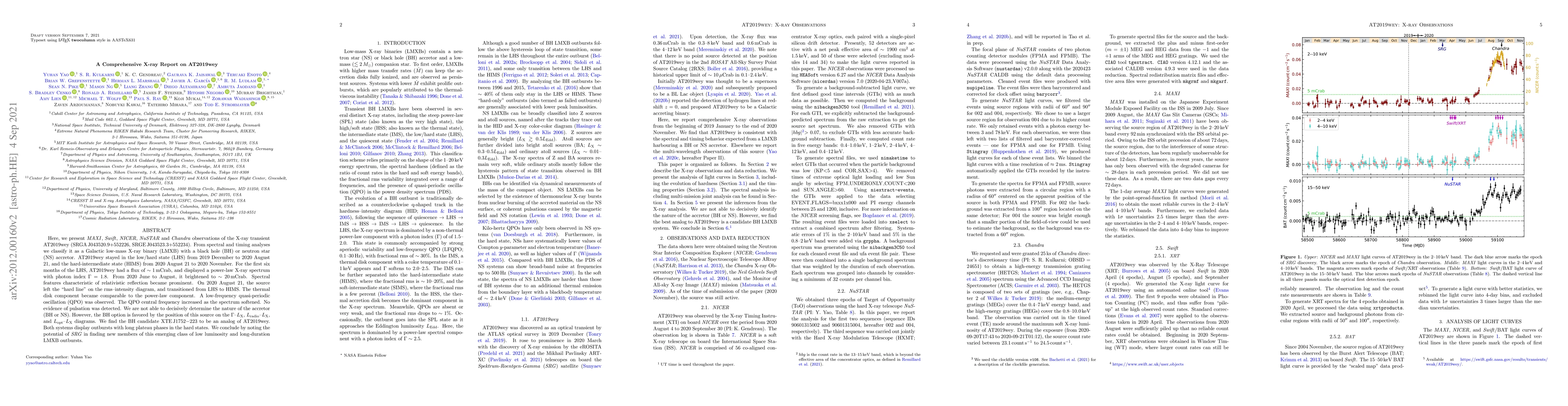 This study uses X-ray observations from multiple telescopes to classify AT2019wey as a Galactic low-mass X-ray binary with a black hole or neutron star accretor, transitioning from a low/hard state to a hard-intermediate state, showing spectral and timing characteristics favoring a black hole.