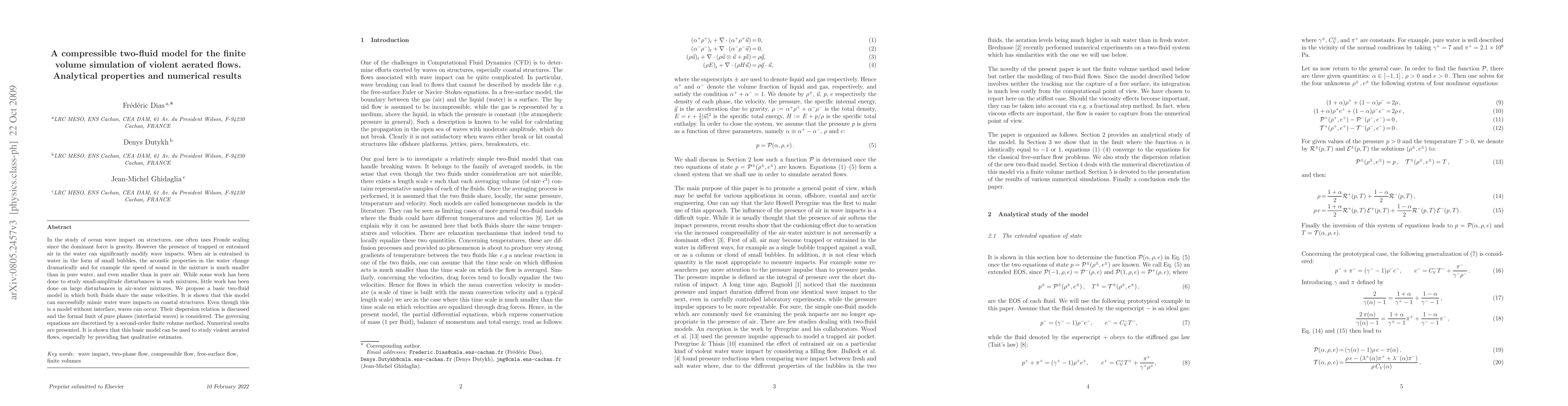 This paper proposes a two-fluid model for simulating violent aerated flows, focusing on ocean wave impacts on structures. The model successfully mimics wave impacts, even without an interface, and provides fast qualitative estimates for such flows.