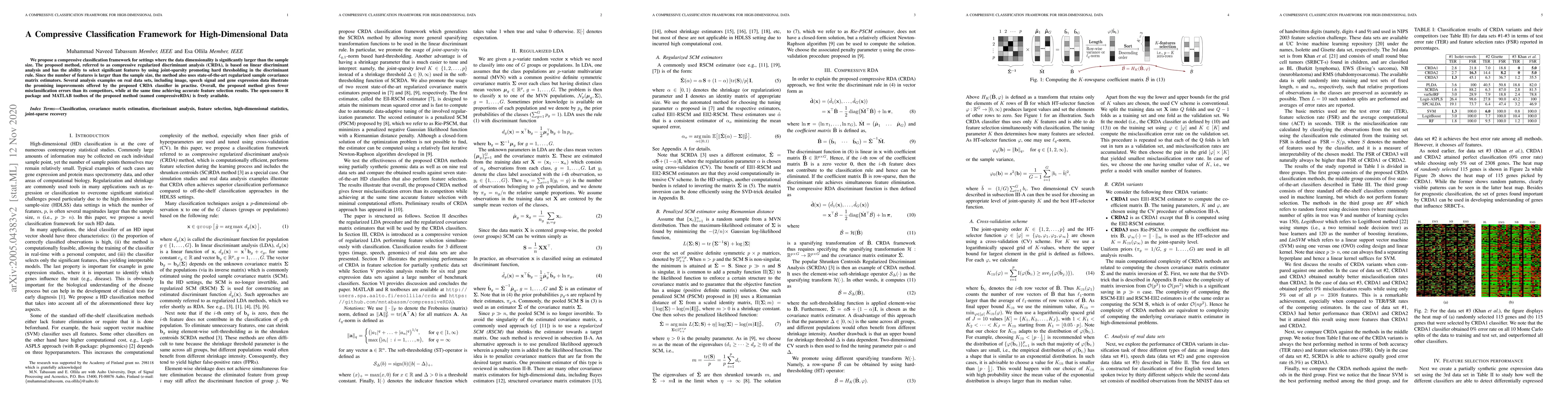 A new classification framework called CRDA is proposed to handle high-dimensional data by selecting significant features through joint-sparsity promoting hard thresholding. It achieves fewer misclassification errors than competitors while providing accurate feature selection results.