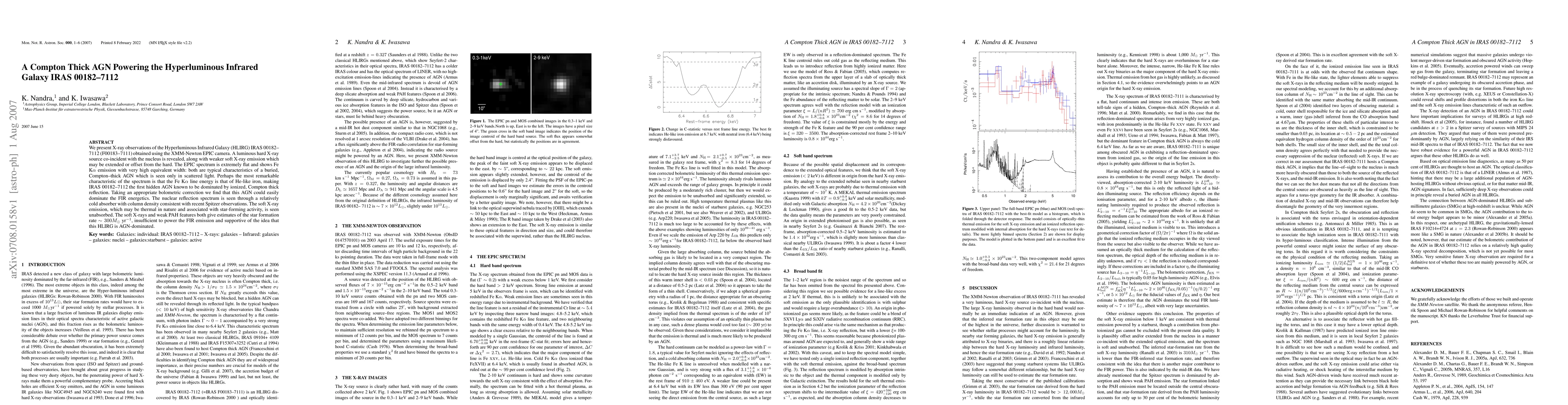 The Hyperluminous Infrared Galaxy IRAS 00182--7112 is revealed to be powered by a Compton-thick Active Galactic Nucleus (AGN) with high-energy X-ray emission, dominating its Far-Infrared (FIR) energy output.