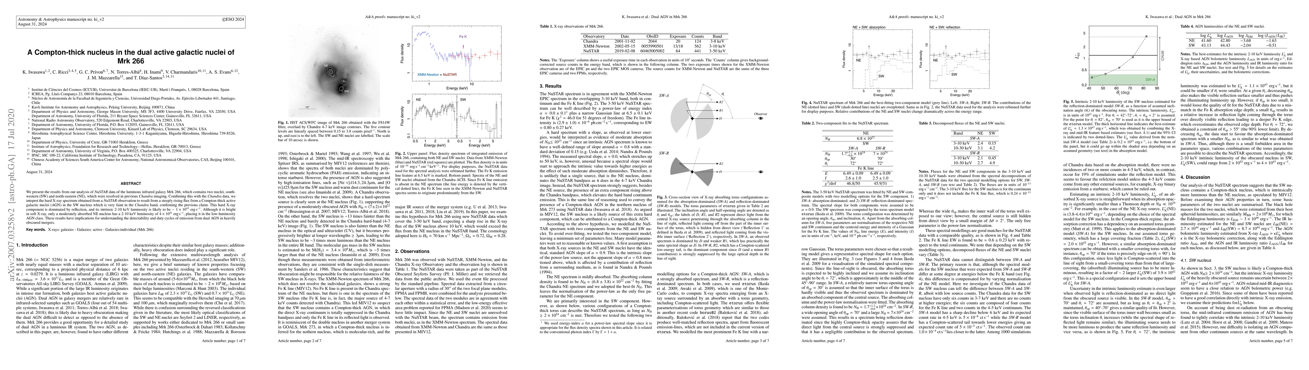 This study reveals a Compton-thick AGN in the SW nucleus of Mrk 266, detected via NuSTAR's hard X-ray spectrum, while the NE nucleus, though bright in soft X-rays, is only moderately absorbed and classified as a low-luminosity AGN. These findings impact our understanding of dual AGN systems in heavily obscured galactic mergers.