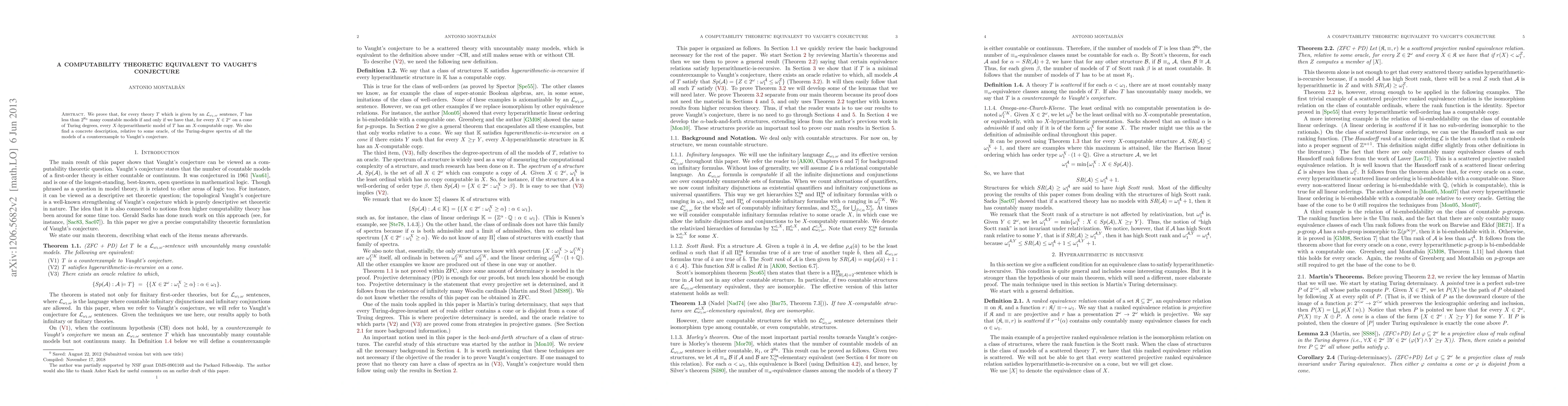 We prove that, for every theory $T$ which is given by an ${\mathcal L}_{\omega_1,\omega}$ sentence, $T$ has less than $2^{\aleph_0}$ many countable models if and only if we have that, for every $X\in 2^\omega$ on a cone of Turing degrees, every $X$-hyperarithmetic model of $T$ has an $X$-computable copy. We also find a concrete description, relative to some oracle, of the Turing-degree spectra of all the models of a counterexample to Vaught's conjecture.