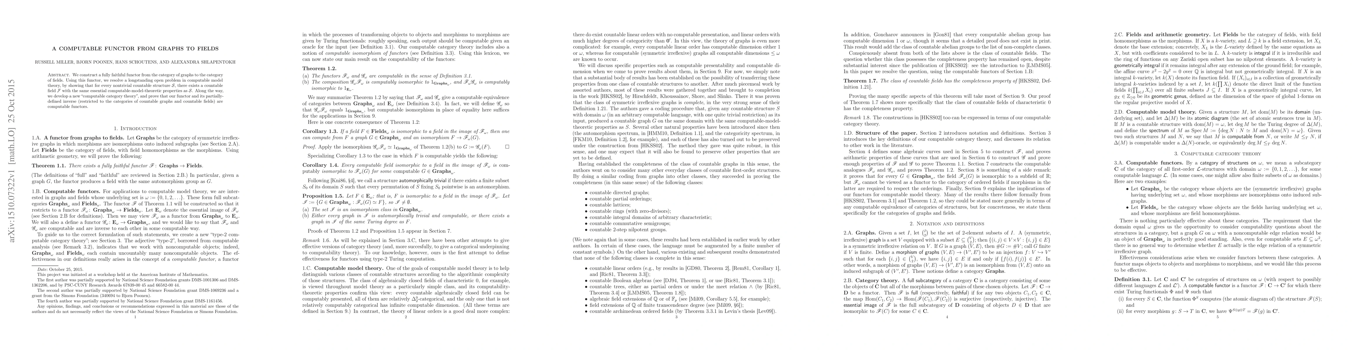 We construct a fully faithful functor from the category of graphs to the category of fields. Using this functor, we resolve a longstanding open problem in computable model theory, by showing that for every nontrivial countable structure S, there exists a countable field F with the same essential computable-model-theoretic properties as S. Along the way, we develop a new "computable category theory," and prove that our functor and its partially-defined inverse (restricted to the categories of countable graphs and countable fields) are computable functors.