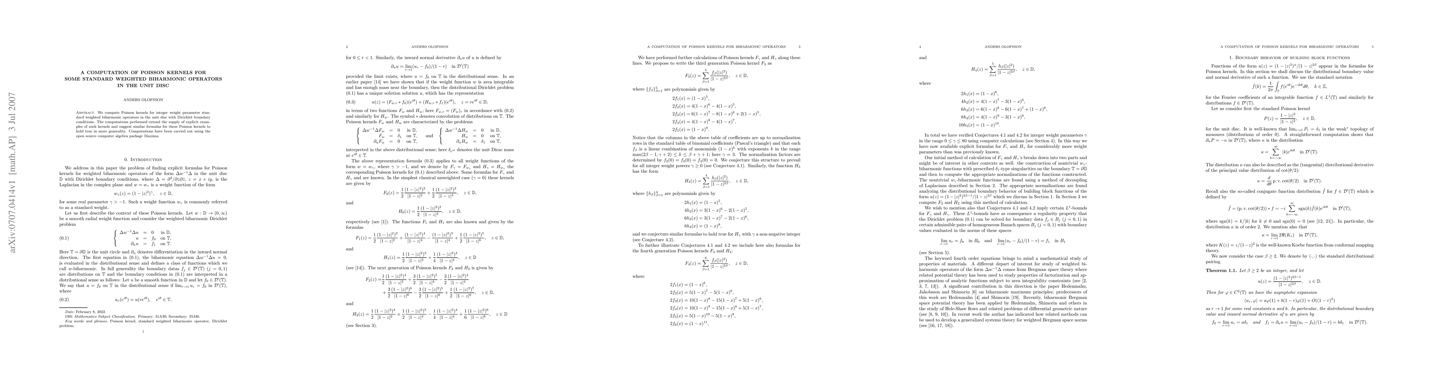 This paper computes Poisson kernels for standard weighted biharmonic operators in the unit disc with Dirichlet boundary conditions, extending explicit examples and suggesting general formulas, using Maxima for computations.
