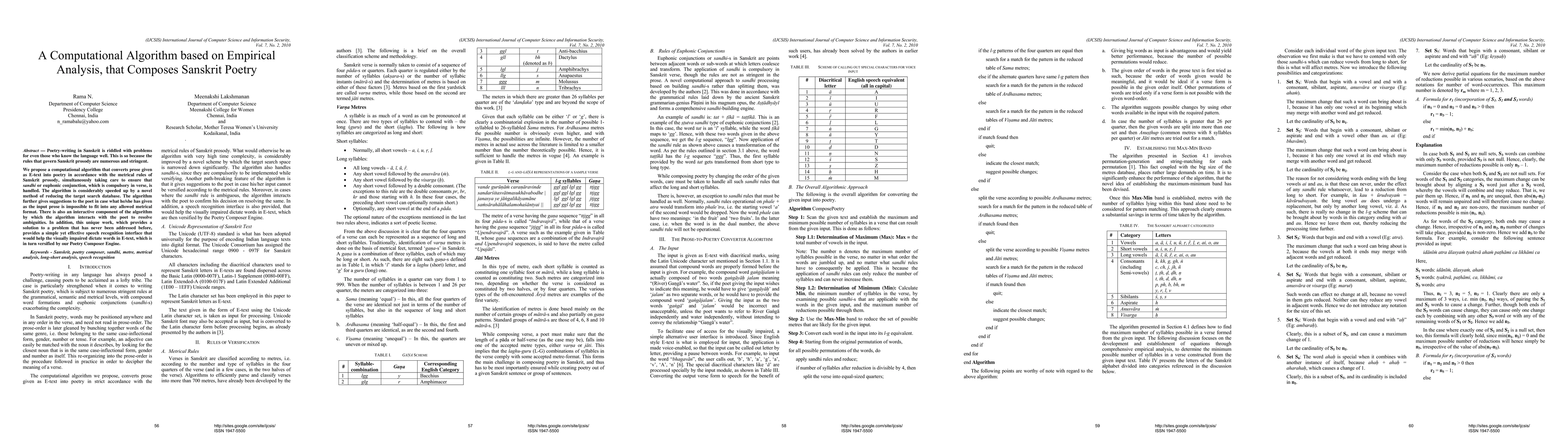 Poetry-writing in Sanskrit is riddled with problems for even those who know the language well. This is so because the rules that govern Sanskrit prosody are numerous and stringent. We propose a computational algorithm that converts prose given as E-text into poetry in accordance with the metrical rules of Sanskrit prosody, simultaneously taking care to ensure that sandhi or euphonic conjunction, which is compulsory in verse, is handled. The algorithm is considerably speeded up by a novel method of reducing the target search database. The algorithm further gives suggestions to the poet in case what he/she has given as the input prose is impossible to fit into any allowed metrical format. There is also an interactive component of the algorithm by which the algorithm interacts with the poet to resolve ambiguities. In addition, this unique work, which provides a solution to a problem that has never been addressed before, provides a simple yet effective speech recognition interface that would help the visually impaired dictate words in E-text, which is in turn versified by our Poetry Composer Engine.