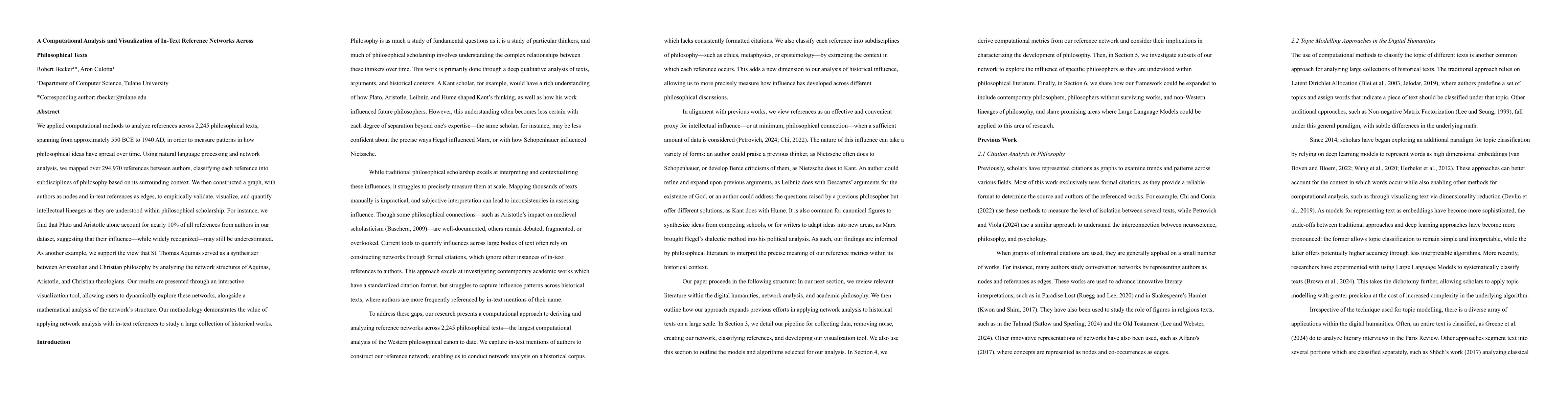 The study presents an extensive computational analysis of philosophical reference networks, employing network analysis and visualization tools to map intellectual lineages.