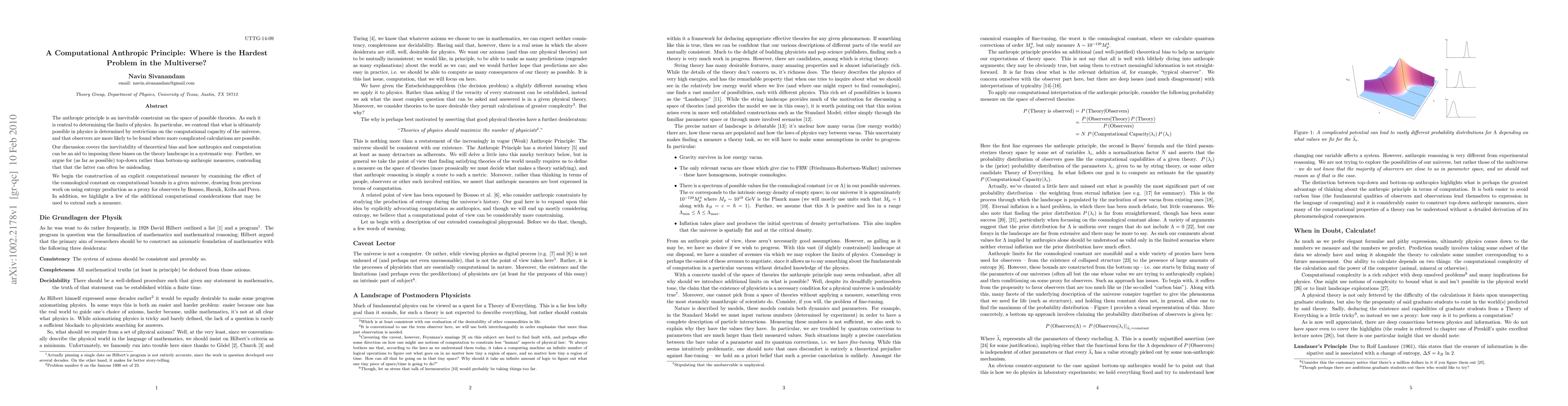 The anthropic principle is an inevitable constraint on the space of possible theories. As such it is central to determining the limits of physics. In particular, we contend that what is ultimately possible in physics is determined by restrictions on the computational capacity of the universe, and that observers are more likely to be found where more complicated calculations are possible. Our discussion covers the inevitability of theoretical bias and how anthropics and computation can be an aid to imposing these biases on the theory landscape in a systematic way. Further, we argue for (as far as possible) top-down rather than bottom-up anthropic measures, contending that that the latter can often be misleading. We begin the construction of an explicit computational measure by examining the effect of the cosmological constant on computational bounds in a given universe, drawing from previous work on using entropy production as a proxy for observers by Bousso, Harnik, Kribs and Perez. In addition, we highlight a few of the additional computational considerations that may be used to extend such a measure.