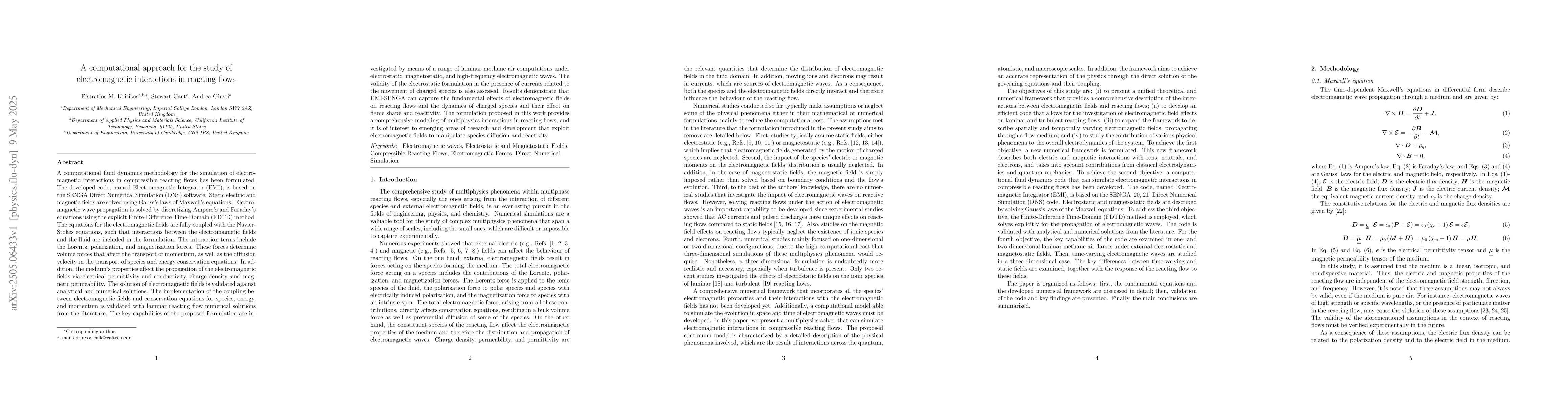 A computational approach named EMI simulates electromagnetic interactions in compressible reacting flows, capturing effects on flame shape and reactivity.