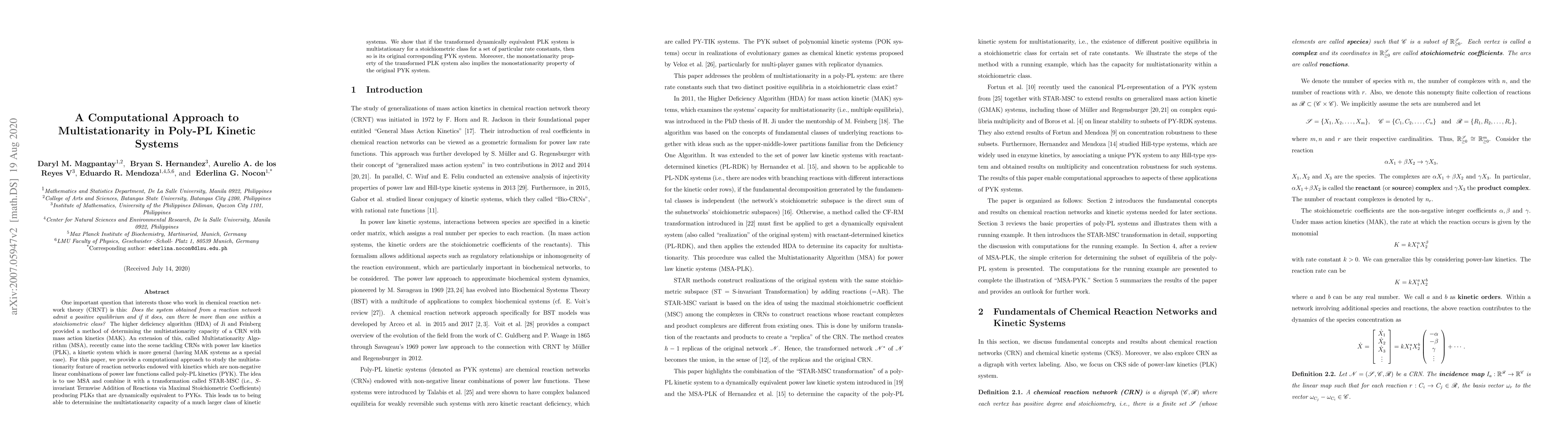 One important question that interests those who work in chemical reaction network theory (CRNT) is this: Does the system obtained from a reaction network admit a positive equilibrium and if it does, can there be more than one within a stoichiometric class? The higher deficiency algorithm (HDA) of Ji and Feinberg provided a method of determining the multistationarity capacity of a CRN with mass action kinetics (MAK). An extension of this, called Multistationarity Algorithm (MSA), recently came into the scene tackling CRNs with power law kinetics (PLK), a kinetic system which is more general (having MAK systems as a special case). For this paper, we provide a computational approach to study the multistationarity feature of reaction networks endowed with kinetics which are non-negative linear combinations of power law functions called poly-PL kinetics (PYK). The idea is to use MSA and combine it with a transformation called STAR-MSC (i.e., $S$-invariant Termwise Addition of Reactions via Maximal Stoichiometric Coefficients) producing PLKs that are dynamically equivalent to PYKs. This leads us to being able to determinine the multistationarity capacity of a much larger class of kinetic systems. We show that if the transformed dynamically equivalent PLK system is multistationary for a stoichiometric class for a set of particular rate constants, then so is its original corresponding PYK system. Moreover, the monostationarity property of the transformed PLK system also implies the monostationarity property of the original PYK system.