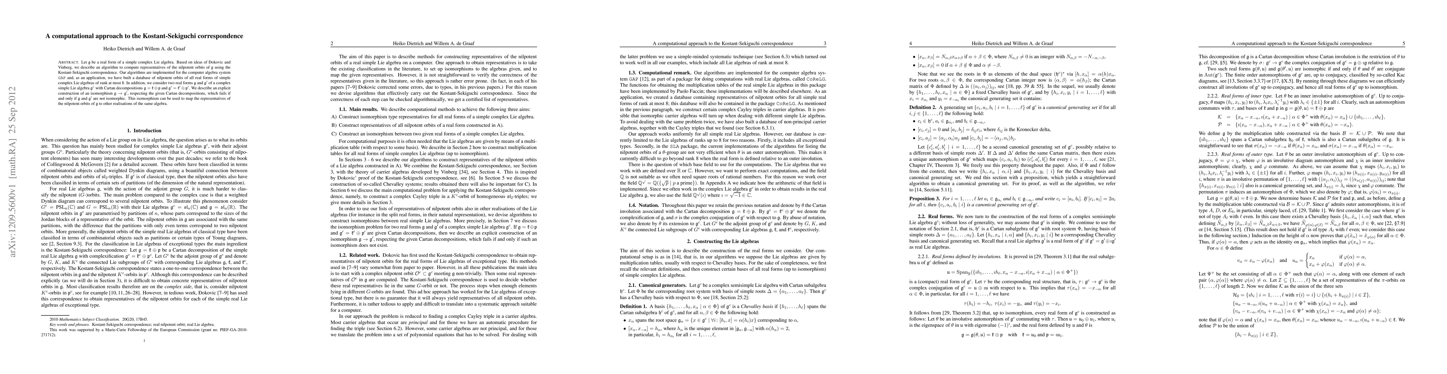 This paper presents a computational algorithm to compute nilpotent orbits of real forms of simple complex Lie algebras using the Kostant-Sekiguchi correspondence, implemented in GAP. The authors also construct an isomorphism respecting Cartan decompositions between two such real forms, which helps in mapping nilpotent orbit representatives.