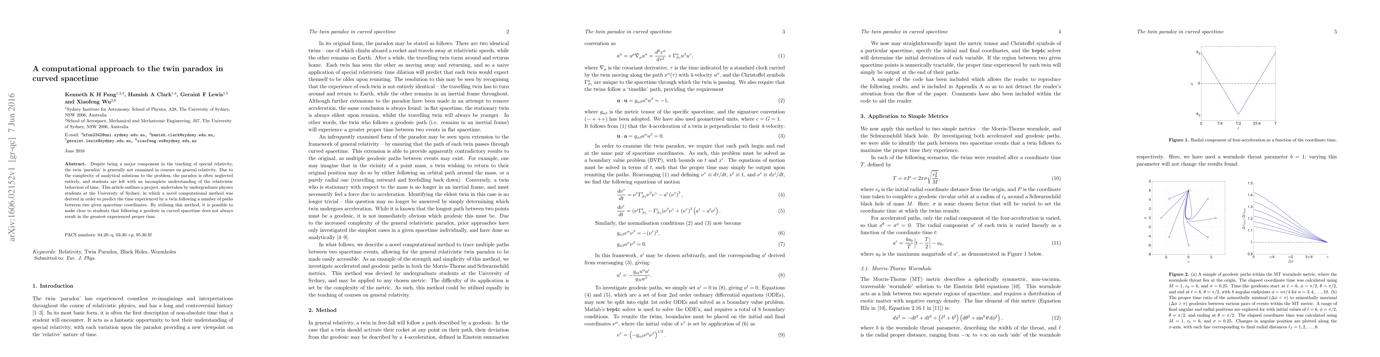 This paper details a computational project by University of Sydney students to resolve the twin paradox in curved spacetime, using a novel method to predict the time experienced by a twin traveling various paths. The approach clarifies that following a geodesic does not always maximize experienced proper time.