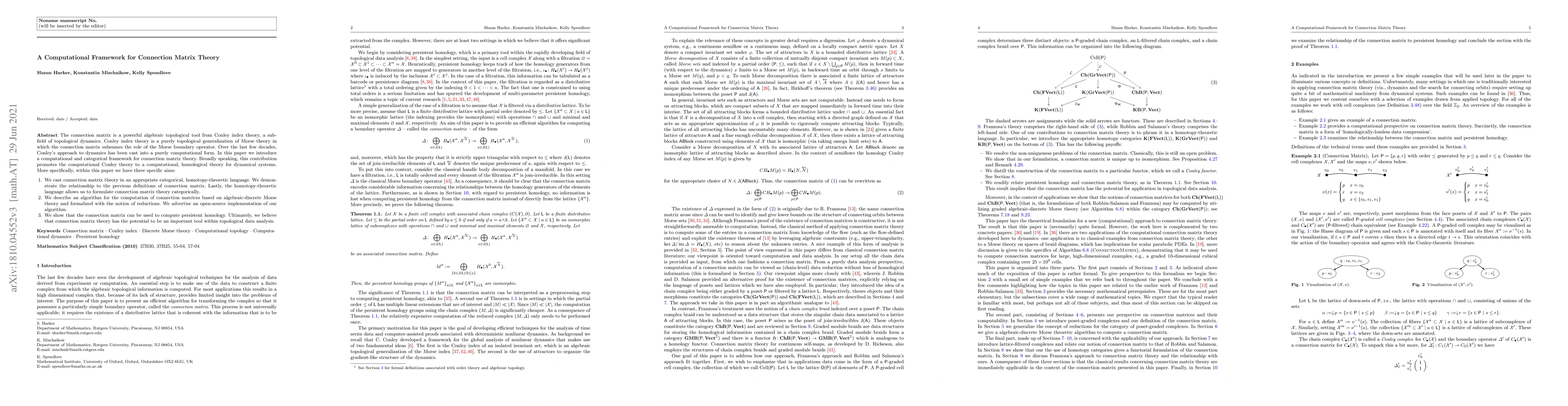 The connection matrix is a powerful algebraic topological tool from Conley index theory that captures relationships between isolated invariant sets. Conley index theory is a topological generalization of Morse theory in which the connection matrix subsumes the role of the Morse boundary operator. Over the last few decades, the ideas of Conley have been cast into a purely computational form. In this paper we introduce a computational, categorical framework for the connection matrix theory. This contribution transforms the computational Conley theory into a computational homological theory for dynamical systems. More specifically, within this paper we have two goals: 1) We cast the connection matrix theory into appropriate categorical, homotopy-theoretic language. We identify objects of the appropriate categories which correspond to connection matrices and may be computed within the computational Conley theory paradigm by using the technique of reductions. 2) We describe an algorithm for this computation based on algebraic-discrete Morse theory.