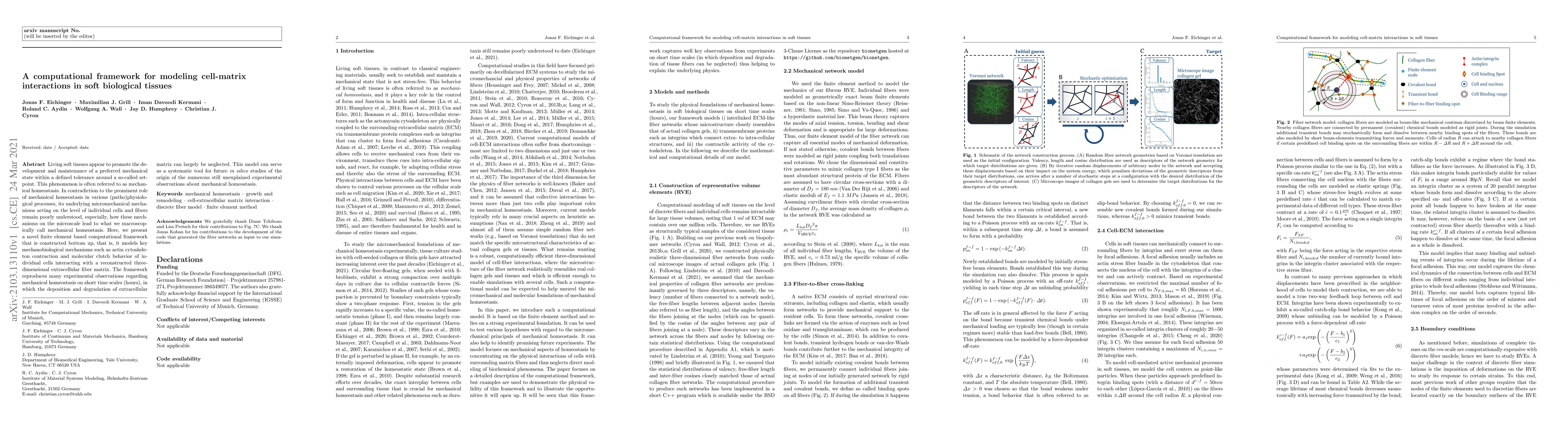 This paper introduces a novel finite element computational framework to model cell-matrix interactions in soft biological tissues, focusing on the micromechanical mechanisms underlying mechanical homeostasis. The framework simulates actin cytoskeleton contraction and molecular clutch behavior, providing insights into how microscale interactions lead to macroscopic mechanical homeostasis.