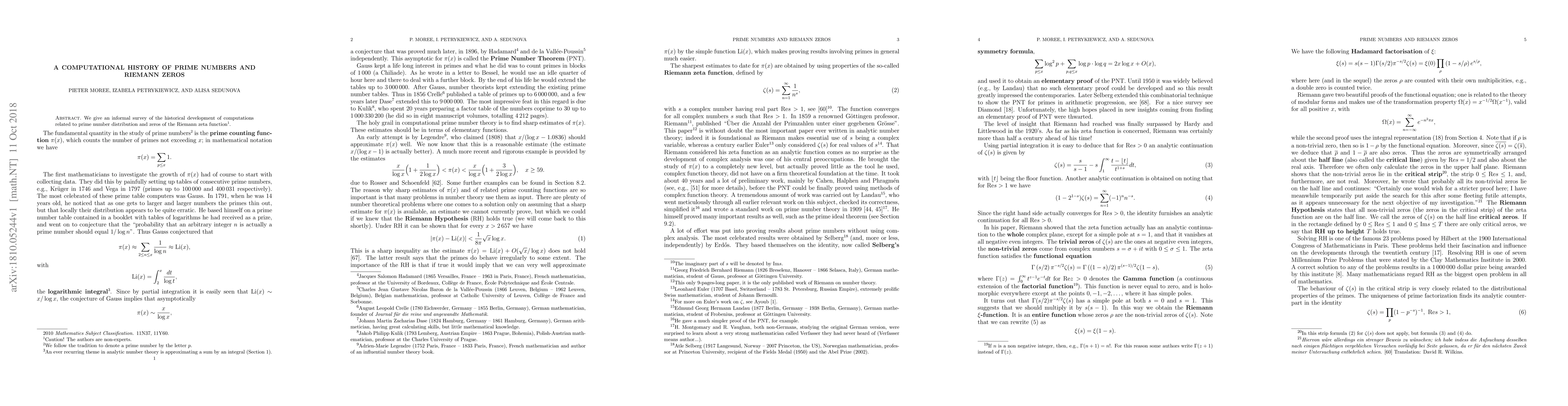 Summary: This paper provides an informal overview of the computational history behind prime number distribution and the Riemann zeta function's zeros, tracing their mathematical and computational evolution.
