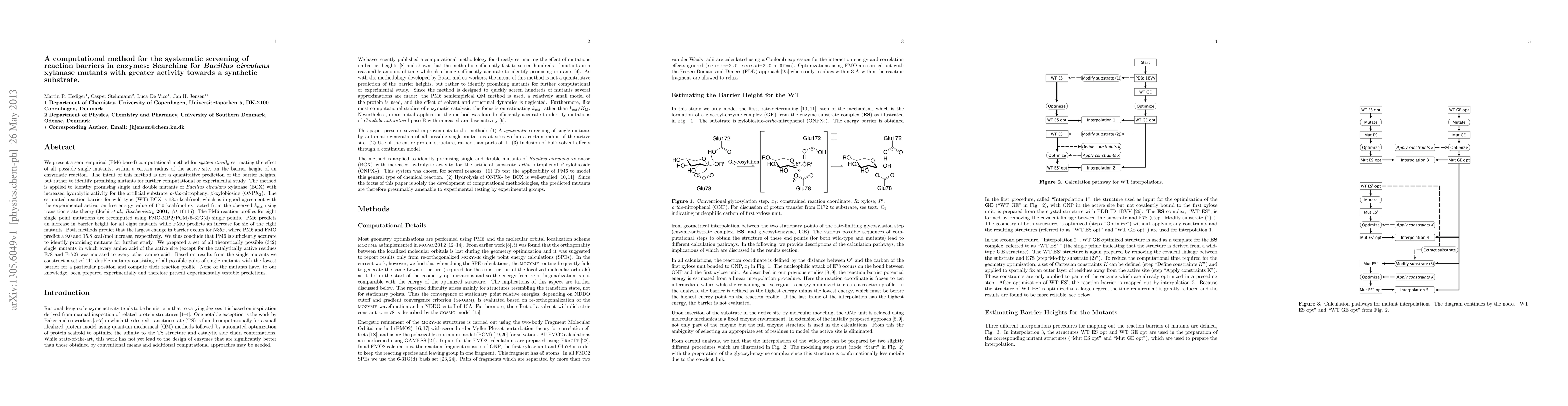 We present a semi-empirical (PM6-based) computational method for systematically estimating the effect of all possible single mutants, within a certain radius of the active site, on the barrier height of an enzymatic reaction. The intent of this method is not a quantitative prediction of the barrier heights, but rather to identify promising mutants for further computational or experimental study. The method is applied to identify promising single and double mutants of Bacillus circulans xylanase (BCX) with increased hydrolytic activity for the artificial substrate ortho-nitrophenyl \beta-xylobioside (ONPX$_2$). The estimated reaction barrier for wild-type (WT) BCX is 18.5 kcal/mol, which is in good agreement with the experimental activation free energy value of 17.0 kcal/mol extracted from the observed k$_\text{cat}$ using transition state theory (Joshi et al., Biochemistry 2001, 40, 10115). The PM6 reaction profiles for eight single point mutations are recomputed using FMO-MP2/PCM/6-31G(d) single points. PM6 predicts an increase in barrier height for all eight mutants while FMO predicts an increase for six of the eight mutants. Both methods predict that the largest change in barrier occurs for N35F, where PM6 and FMO predict a 9.0 and 15.8 kcal/mol increase, respectively. We thus conclude that PM6 is sufficiently accurate to identify promising mutants for further study. We prepared a set of all theoretically possible (342) single mutants in which every amino acid of the active site (except for the catalytically active residues E78 and E172) was mutated to every other amino acid. Based on results from the single mutants we construct a set of 111 double mutants consisting of all possible pairs of single mutants with the lowest barrier for a particular position and compute their reaction profile. None of the mutants have, to our knowledge, been prepared experimentally[...].