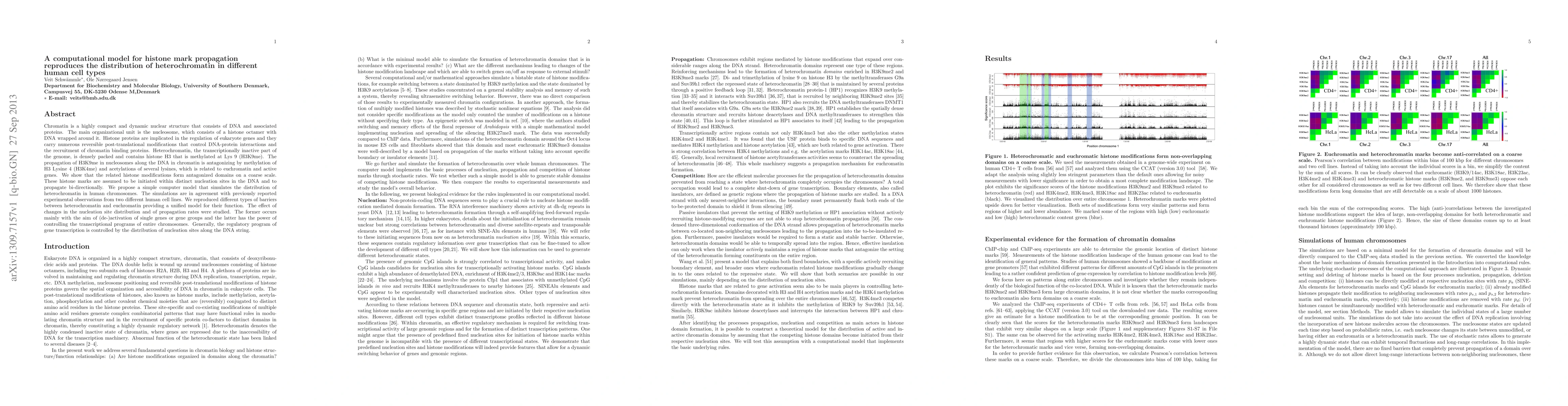 This paper proposes a computational model to simulate histone mark propagation, specifically focusing on the distribution of heterochromatin in human cell types. The model successfully reproduces observed heterochromatin patterns and explores the effects of nucleation site distribution and propagation rates on gene regulation.