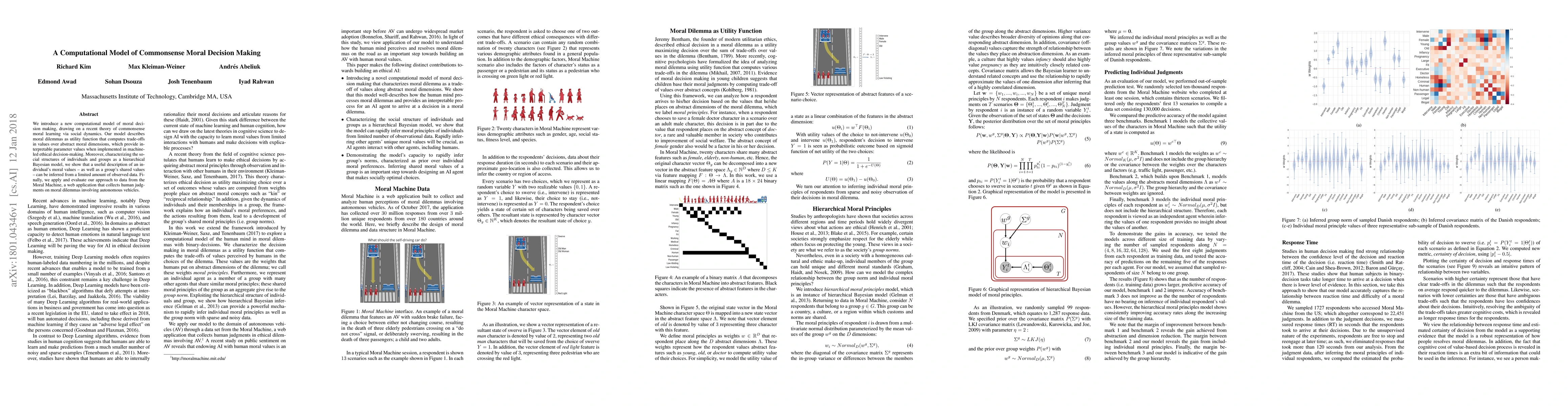 We introduce a new computational model of moral decision making, drawing on a recent theory of commonsense moral learning via social dynamics. Our model describes moral dilemmas as a utility function that computes trade-offs in values over abstract moral dimensions, which provide interpretable parameter values when implemented in machine-led ethical decision-making. Moreover, characterizing the social structures of individuals and groups as a hierarchical Bayesian model, we show that a useful description of an individual's moral values - as well as a group's shared values - can be inferred from a limited amount of observed data. Finally, we apply and evaluate our approach to data from the Moral Machine, a web application that collects human judgments on moral dilemmas involving autonomous vehicles.