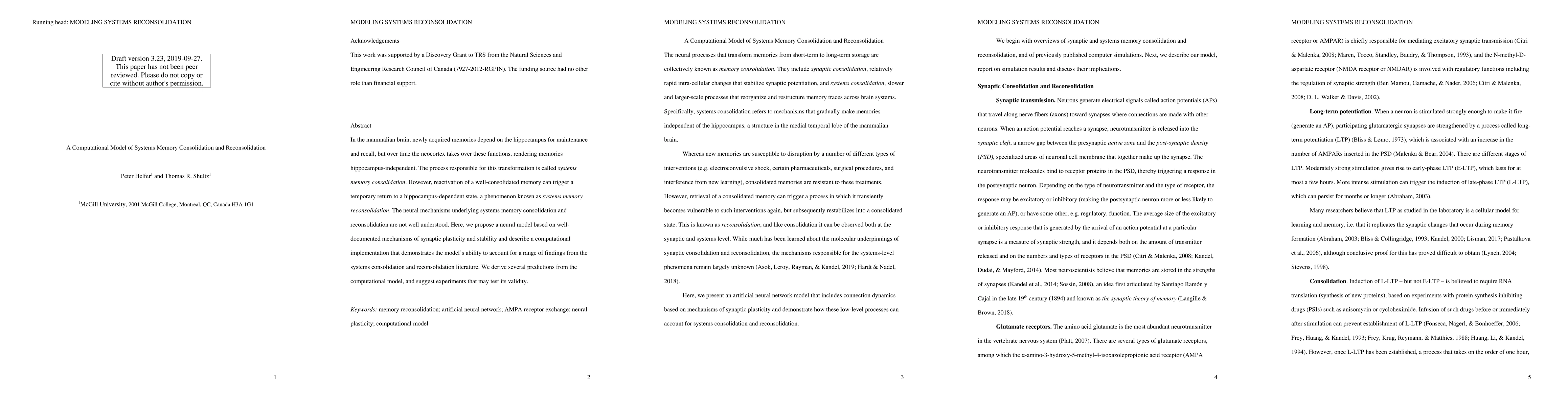 In the mammalian brain, newly acquired memories depend on the hippocampus for maintenance and recall, but over time the neocortex takes over these functions, rendering memories hippocampus-independent. The process responsible for this transformation is called systems memory consolidation. However, reactivation of a well-consolidated memory can trigger a temporary return to a hippocampus-dependent state, a phenomenon known as systems memory reconsolidation. The neural mechanisms underlying systems memory consolidation and reconsolidation are not well understood. Here, we propose a neural model based on well-documented mechanisms of synaptic plasticity and stability and describe a computational implementation that demonstrates the model's ability to account for a range of findings from the systems consolidation and reconsolidation literature. We derive several predictions from the computational model and suggest experiments that may test its validity.