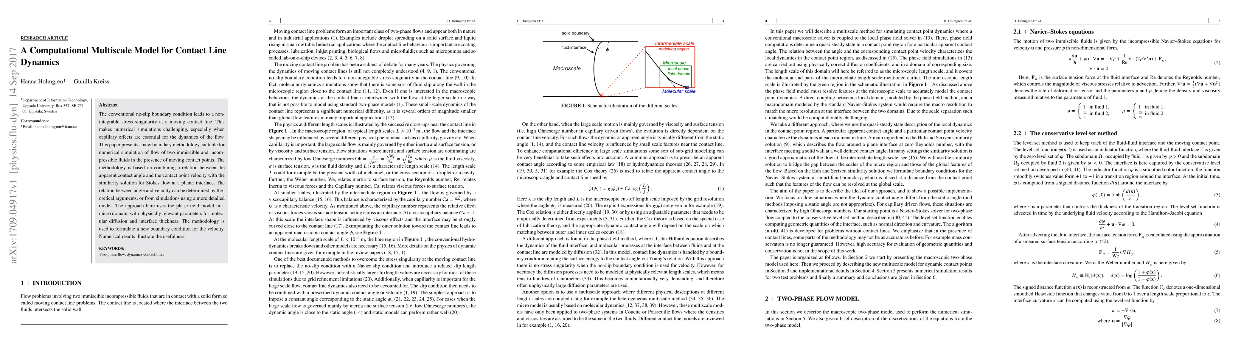 The conventional no-slip boundary condition leads to a non-integrable stress singularity at a moving contact line. This makes numerical simulations challenging, especially when capillary effects are essential for the dynamics of the flow. This paper presents a new boundary methodology, suitable for numerical simulation of flow of two immiscible and incompressible fluids in the presence of moving contact points. The methodology is based on combining a relation between the apparent contact angle and the contact point velocity with the similarity solution for Stokes flow at a planar interface. The relation between angle and velocity can be determined by theoretical arguments, or from simulations using a more detailed model. The approach here uses the phase field model in a micro domain, with physically relevant parameters for molecular diffusion and interface thickness. The methodology is used to formulate a new boundary condition for the velocity. Numerical results illustrate the usefulness.