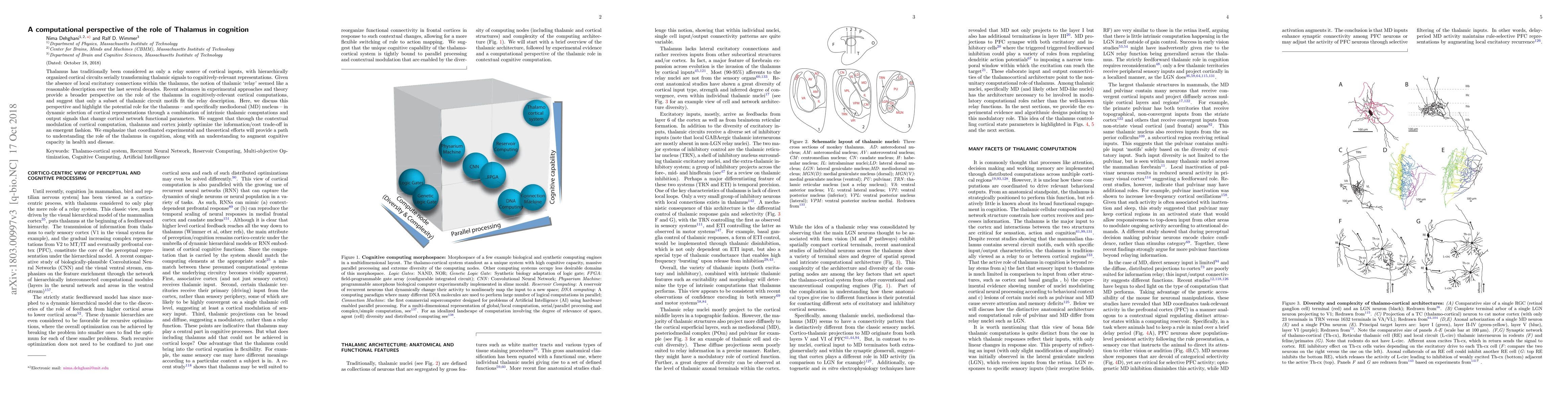 Thalamus has traditionally been considered as only a relay source of cortical inputs, with hierarchically organized cortical circuits serially transforming thalamic signals to cognitively-relevant representations. Given the absence of local excitatory connections within the thalamus, the notion of thalamic `relay' seemed like a reasonable description over the last several decades. Recent advances in experimental approaches and theory provide a broader perspective on the role of the thalamus in cognitively-relevant cortical computations, and suggest that only a subset of thalamic circuit motifs fit the relay description. Here, we discuss this perspective and highlight the potential role for the thalamus -- and specifically mediodorsal (MD) nucleus -- in dynamic selection of cortical representations through a combination of intrinsic thalamic computations and output signals that change cortical network functional parameters. We suggest that through the contextual modulation of cortical computation, thalamus and cortex jointly optimize the information/cost tradeoff in an emergent fashion. We emphasize that coordinated experimental and theoretical efforts will provide a path to understanding the role of the thalamus in cognition, along with an understanding to augment cognitive capacity in health and disease.