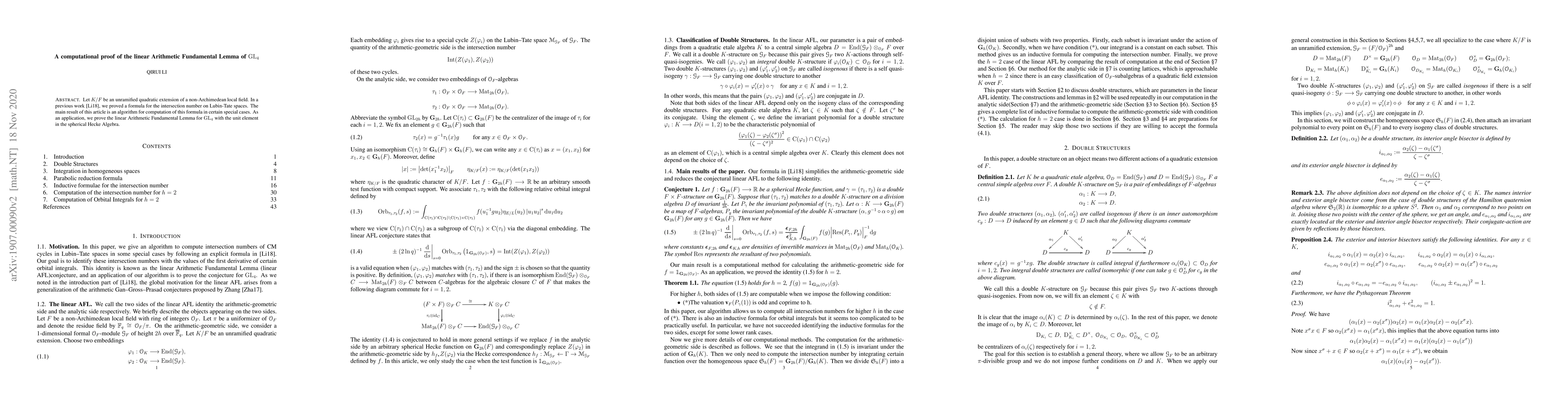 Summary: This paper provides a computational proof for the linear Arithmetic Fundamental Lemma of GL$_4$ in the context of unramified quadratic extensions, focusing on the unit element in the spherical Hecke Algebra, with all measures normalized by the hyperspecial subgroup.