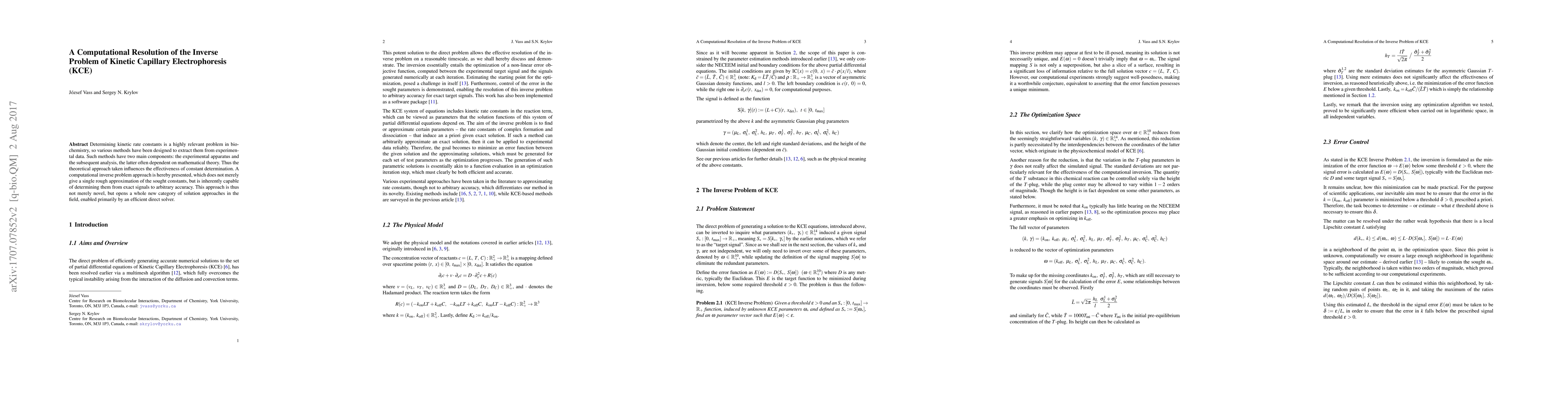 This paper presents a computational method for solving the inverse problem in kinetic capillary electrophoresis, offering a precise determination of kinetic rate constants from exact signals. The novel approach, enabled by an efficient direct solver, provides a new category of solution methods in the field.