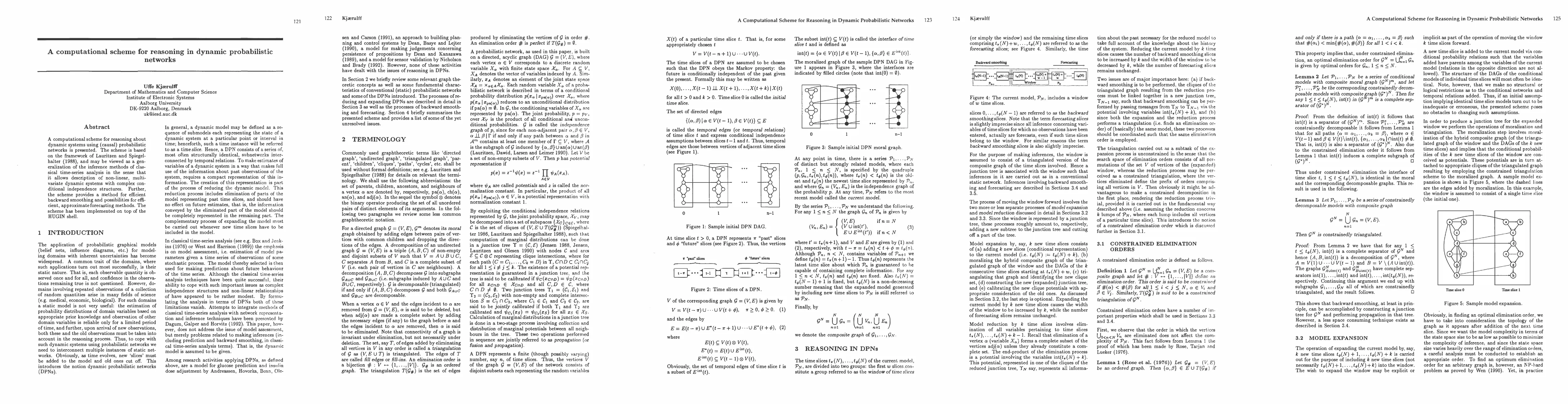 This paper introduces a computational scheme for reasoning in dynamic probabilistic networks, generalizing classical time-series analysis to handle non-linear, multivariate systems with complex dependencies. It implements efficient backward smoothing and approximate forecasting methods within the HUGIN framework.