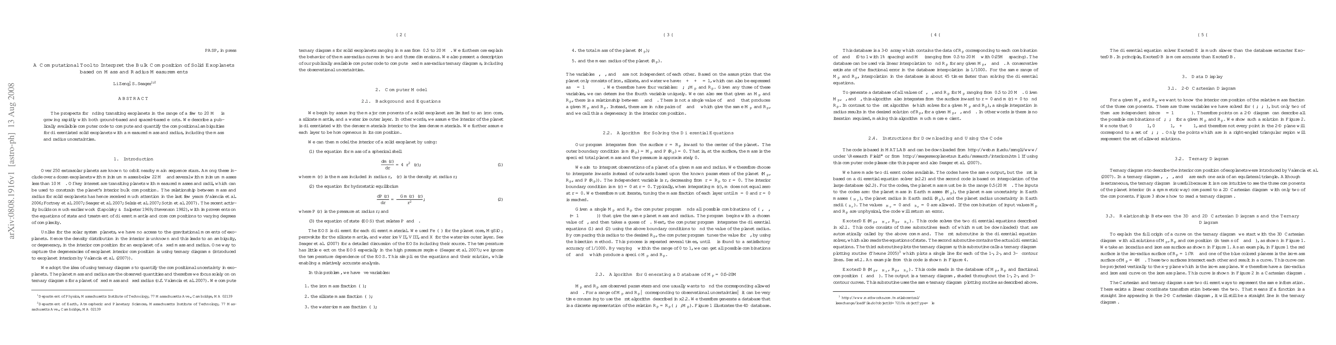 The prospects for finding transiting exoplanets in the range of a few to 20 Earth masses is growing rapidly with both ground-based and spaced-based efforts. We describe a publicly available computer code to compute and quantify the compositional ambiguities for differentiated solid exoplanets with a measured mass and radius, including the mass and radius uncertainties.