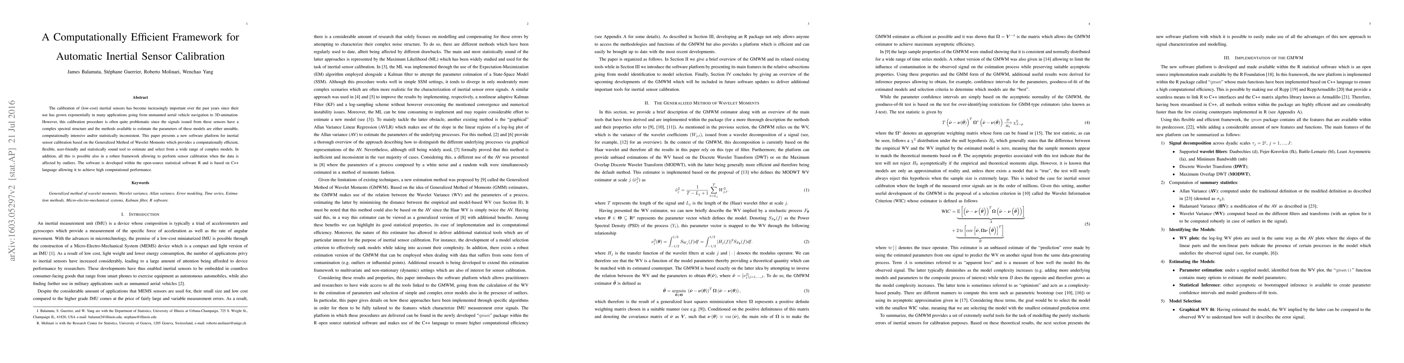 The calibration of (low-cost) inertial sensors has become increasingly important over the past years since their use has grown exponentially in many applications going from unmanned aerial vehicle navigation to 3D-animation. However, this calibration procedure is often quite problematic since the signals issued from these sensors have a complex spectral structure and the methods available to estimate the parameters of these models are either unstable, computationally intensive and/or statistically inconsistent. This paper presents a new software platform for inertial sensor calibration based on the Generalized Method of Wavelet Moments which provides a computationally efficient, flexible, user-friendly and statistically sound tool to estimate and select from a wide range of complex models. The software is developed within the open-source statistical software R and is based on C++ language allowing it to achieve high computational performance.