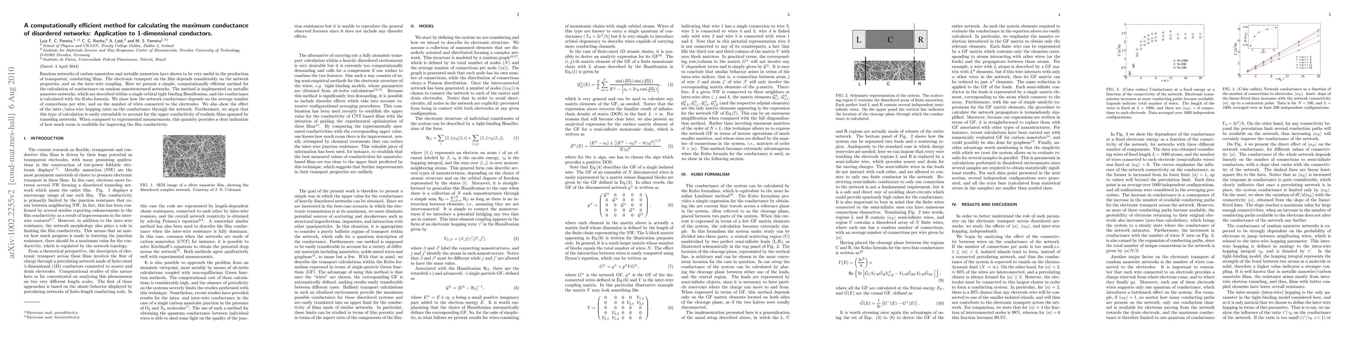 Random networks of carbon nanotubes and metallic nanowires have shown to be very useful in the production of transparent, conducting films. The electronic transport on the film depends considerably on the network properties, and on the inter-wire coupling. Here we present a simple, computationally efficient method for the calculation of conductance on random nanostructured networks. The method is implemented on metallic nanowire networks, which are described within a single-orbital tight binding Hamiltonian, and the conductance is calculated with the Kubo formula. We show how the network conductance depends on the average number of connections per wire, and on the number of wires connected to the electrodes. We also show the effect of the inter-/intra-wire hopping ratio on the conductance through the network. Furthermore, we argue that this type of calculation is easily extendable to account for the upper conductivity of realistic films spanned by tunneling networks. When compared to experimental measurements, this quantity provides a clear indication of how much room is available for improving the film conductivity.