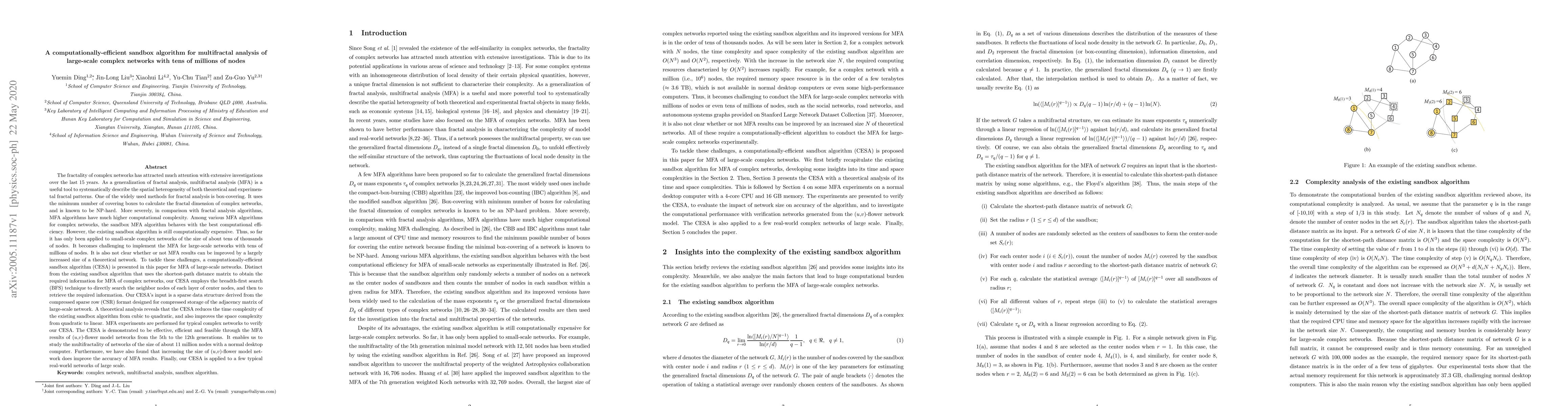 This paper presents a computationally-efficient sandbox algorithm (CESA) for multifractal analysis of large-scale complex networks, employing breadth-first search to reduce time complexity from cubic to quadratic and space complexity from quadratic to linear. Experiments on typical and real-world networks demonstrate CESA's effectiveness.
