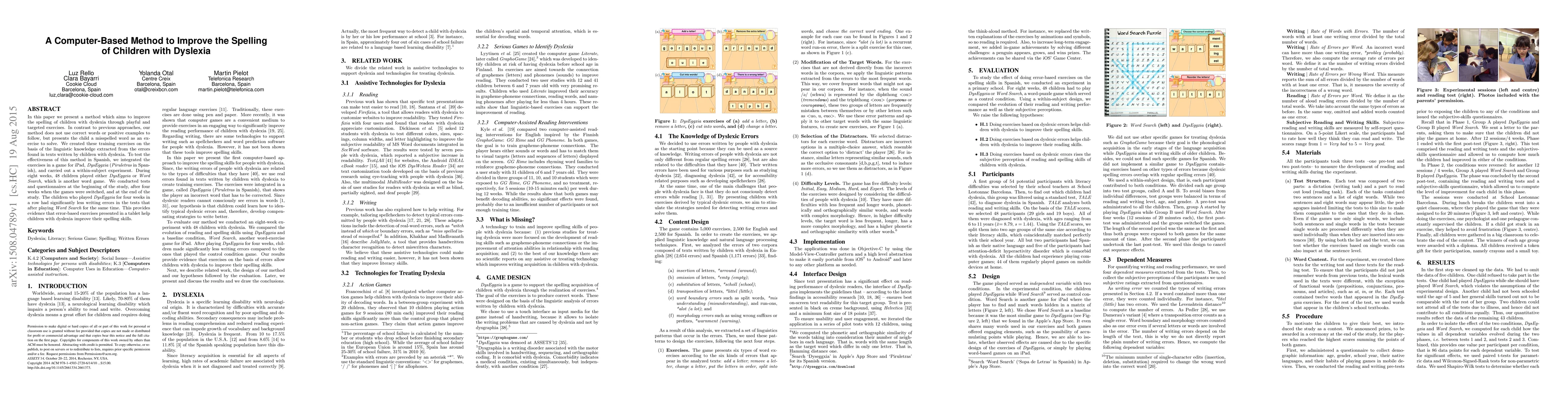 In this paper we present a method which aims to improve the spelling of children with dyslexia through playful and targeted exercises. In contrast to previous approaches, our method does not use correct words or positive examples to follow, but presents the child a misspelled word as an exercise to solve. We created these training exercises on the basis of the linguistic knowledge extracted from the errors found in texts written by children with dyslexia. To test the effectiveness of this method in Spanish, we integrated the exercises in a game for iPad, DysEggxia (Piruletras in Spanish), and carried out a within-subject experiment. During eight weeks, 48 children played either DysEggxia or Word Search, which is another word game. We conducted tests and questionnaires at the beginning of the study, after four weeks when the games were switched, and at the end of the study. The children who played DysEggxia for four weeks in a row had significantly less writing errors in the tests that after playing Word Search for the same time. This provides evidence that error-based exercises presented in a tablet help children with dyslexia improve their spelling skills.