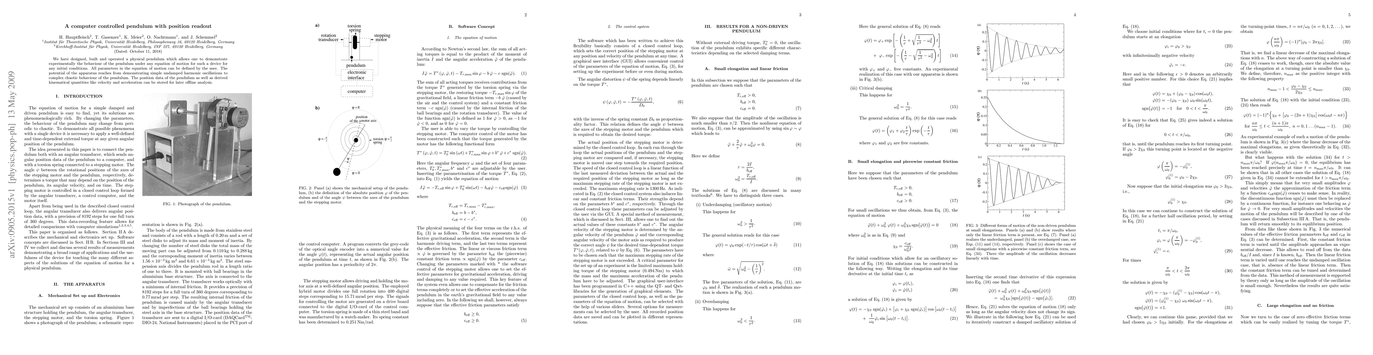 This research presents a computer-controlled pendulum system that allows users to define and experiment with various equations of motion, demonstrating both simple and chaotic pendulum behavior. The apparatus records position, velocity, and acceleration data for detailed offline analysis.