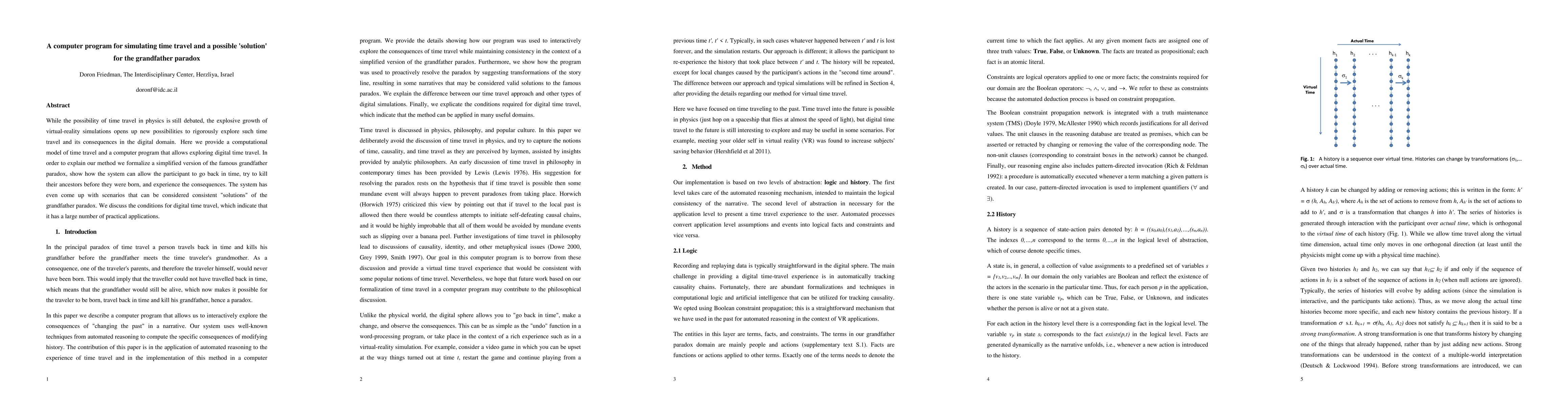 This paper presents a computer program simulating time travel and explores the grandfather paradox within a digital framework. It proposes potential consistent solutions to the paradox and discusses the broader implications of digital time travel.