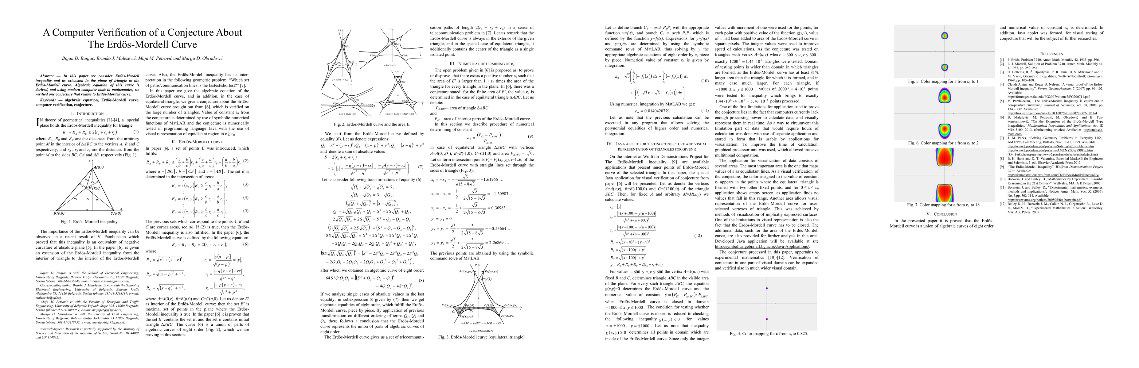 This paper derives the algebraic equation for the Erdős-Mordell curve, an extension of the Erdős-Mordell inequality, and verifies a conjecture using modern computer verification tools. The study confirms the relationship posited in the conjecture regarding the Erdős-Mordell curve.