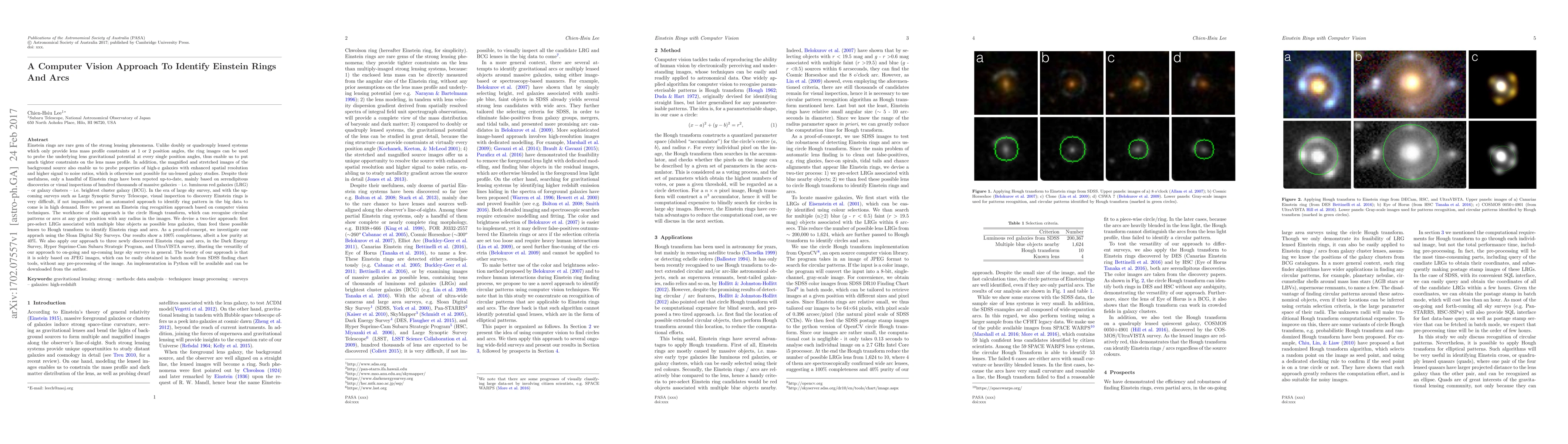 Einstein rings are rare gem of the strong lensing phenomena. Unlike doubly or quadruply lensed systems, the ring images can be used to probe the underlying lens gravitational potential at every position angle, putting much tighter constraints on the lens mass profile. In addition, the magnified background source also enable us to probe high-z galaxies with enhanced spatial resolution and higher S/N, which is otherwise not possible for un-lensed galaxy studies. Despite their usefulness, only a handful of Einstein rings have been reported so far, mainly by serendipitous discoveries or visual inspections of hundred thousands of massive galaxies or galaxy clusters. With the on-going and forth-coming large area surveys such as Large Synoptic Survey Telescope, visual inspection to discover Einstein rings is very difficult, and an automated approach to identify ring pattern in the big data to come is in high demand. Here we present an Einstein ring recognition approach based on computer vision techniques. The workhorse is the circle Hough transform, which can recognize circular patterns or arcs at any position with any radius in the images. We devise a two-tier approach: first pre-select LRGs associated with multiple blue objects as possible lens galaxies, then feed these possible lenses to Hough transform. As a proof-of-concept, we investigate our approach using the Sloan Digital Sky Surveys. Our results show high completeness, albeit low purity. We also apply our approach to three newly discovered Einstein rings/arcs, in the DES, HSC-SSP, and UltraVISTA survey, illustrating the versatility of our approach to on-going and up-coming large sky surveys in general. The beauty of our approach is that it is solely based on JPEG images, which can be easily obtained in batch mode from SDSS finding chart tools, without any pre-processing of the image. (Abridged)