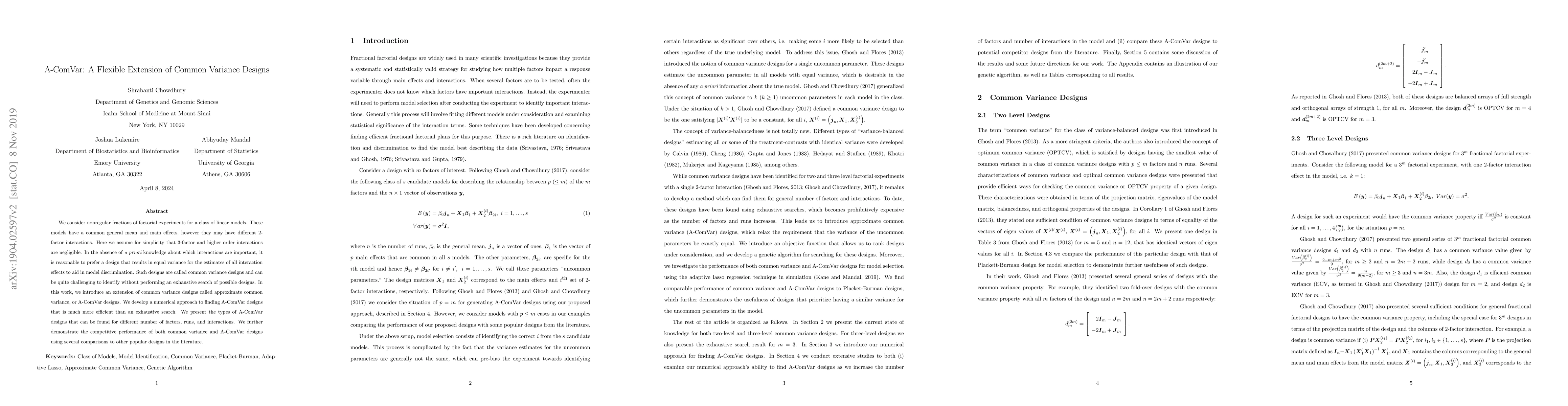 Researchers introduced A-ComVar designs to efficiently find linear models with equal variance for interaction effects without exhaustive search. They demonstrated competitive performance of both common variance and A-ComVar designs in experiments.