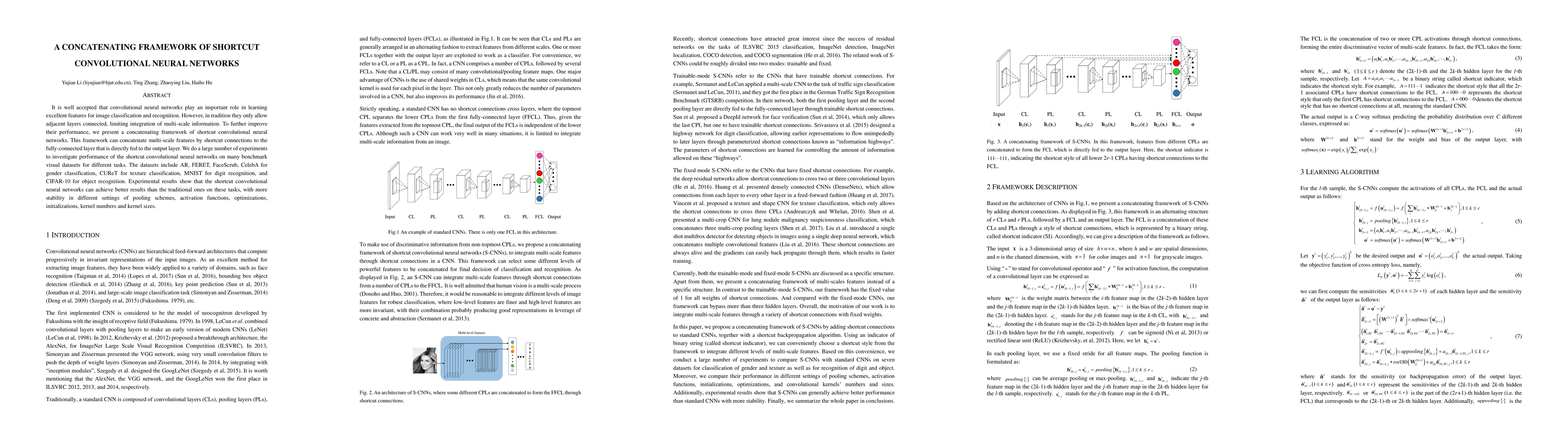 This paper introduces a concatenating framework of shortcut convolutional neural networks that enhances feature integration by concatenating multi-scale features through shortcut connections, leading to improved performance and stability across various benchmark visual datasets for tasks like gender, texture, digit, and object recognition. Experimental results demonstrate superior performance compared to traditional convolutional neural networks.