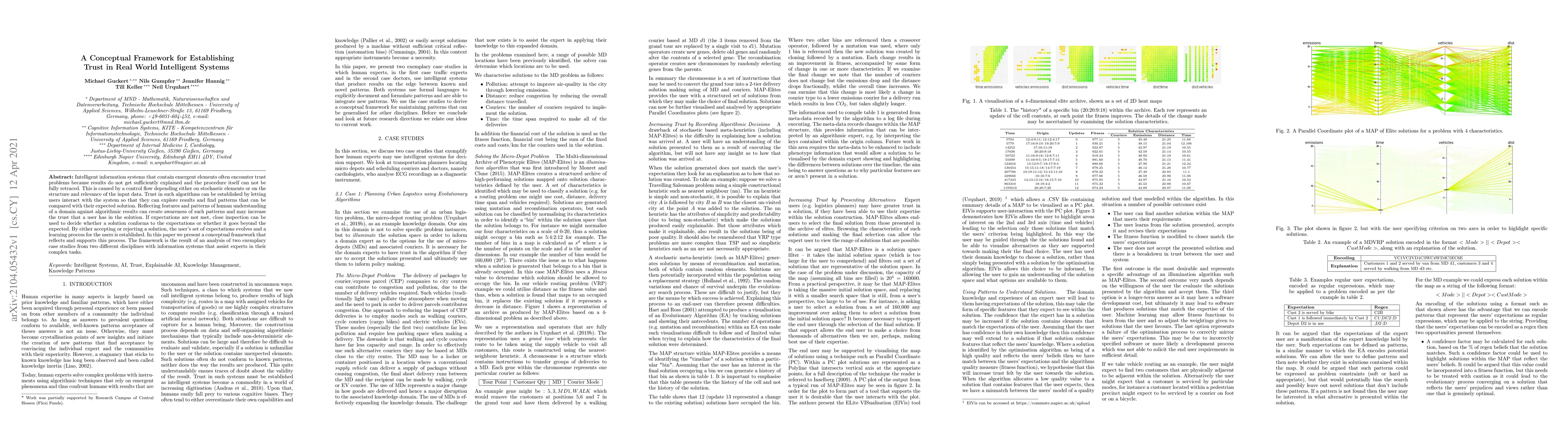 Intelligent information systems that contain emergent elements often encounter trust problems because results do not get sufficiently explained and the procedure itself can not be fully retraced. This is caused by a control flow depending either on stochastic elements or on the structure and relevance of the input data. Trust in such algorithms can be established by letting users interact with the system so that they can explore results and find patterns that can be compared with their expected solution. Reflecting features and patterns of human understanding of a domain against algorithmic results can create awareness of such patterns and may increase the trust that a user has in the solution. If expectations are not met, close inspection can be used to decide whether a solution conforms to the expectations or whether it goes beyond the expected. By either accepting or rejecting a solution, the user's set of expectations evolves and a learning process for the users is established. In this paper we present a conceptual framework that reflects and supports this process. The framework is the result of an analysis of two exemplary case studies from two different disciplines with information systems that assist experts in their complex tasks.