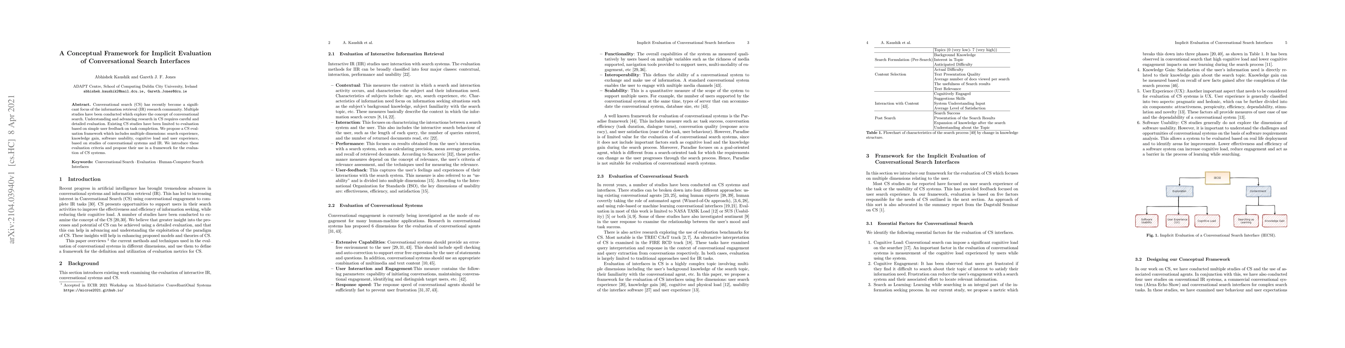 This paper proposes a comprehensive framework for evaluating conversational search interfaces, incorporating dimensions such as search experience, knowledge gain, usability, cognitive load, and user experience, moving beyond traditional task completion feedback. The framework aims to advance research in conversational search by providing a detailed and multi-faceted evaluation approach.