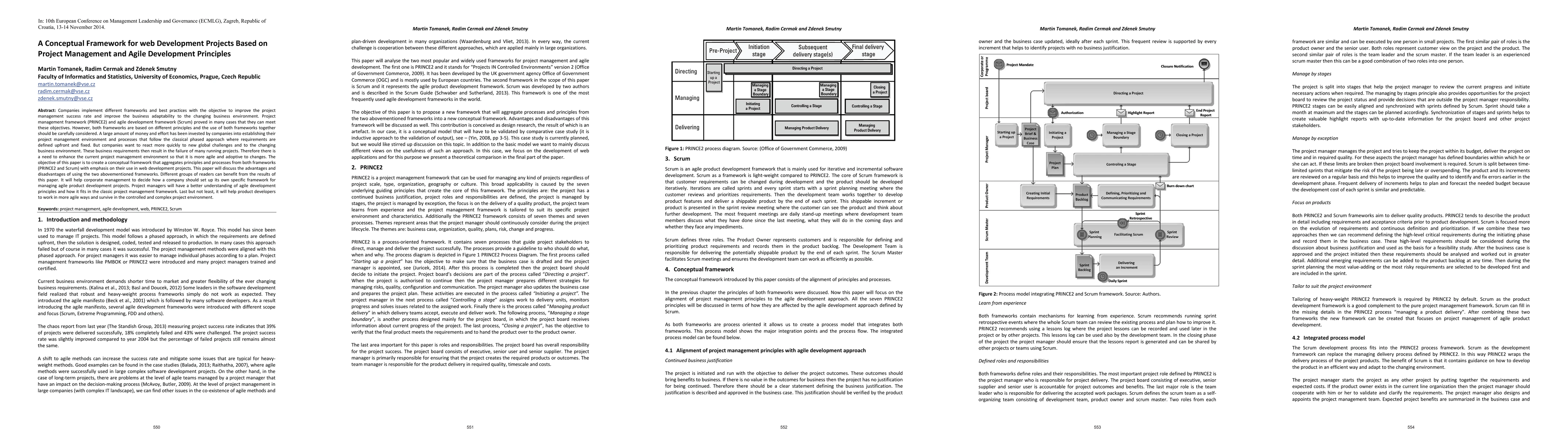 This paper proposes a conceptual framework integrating PRINCE2 and Scrum principles for web development projects, aiming to enhance project management adaptability and success. It aims to assist corporate management, project managers, and developers in navigating the hybrid approach effectively.